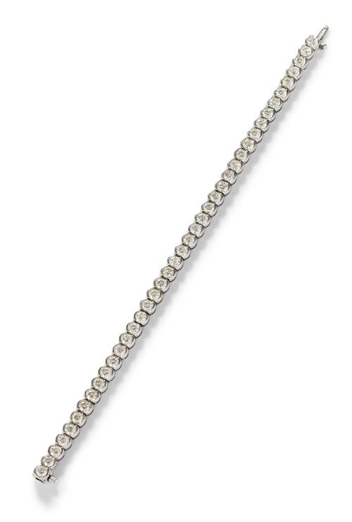 Composed of a line of 41 half collet-set brilliant-cut diamonds completed by a concealed box clasp, the diamonds together weighing approximately 8.20 carats, mounted in 18ct white gold, length 175mm.