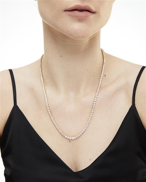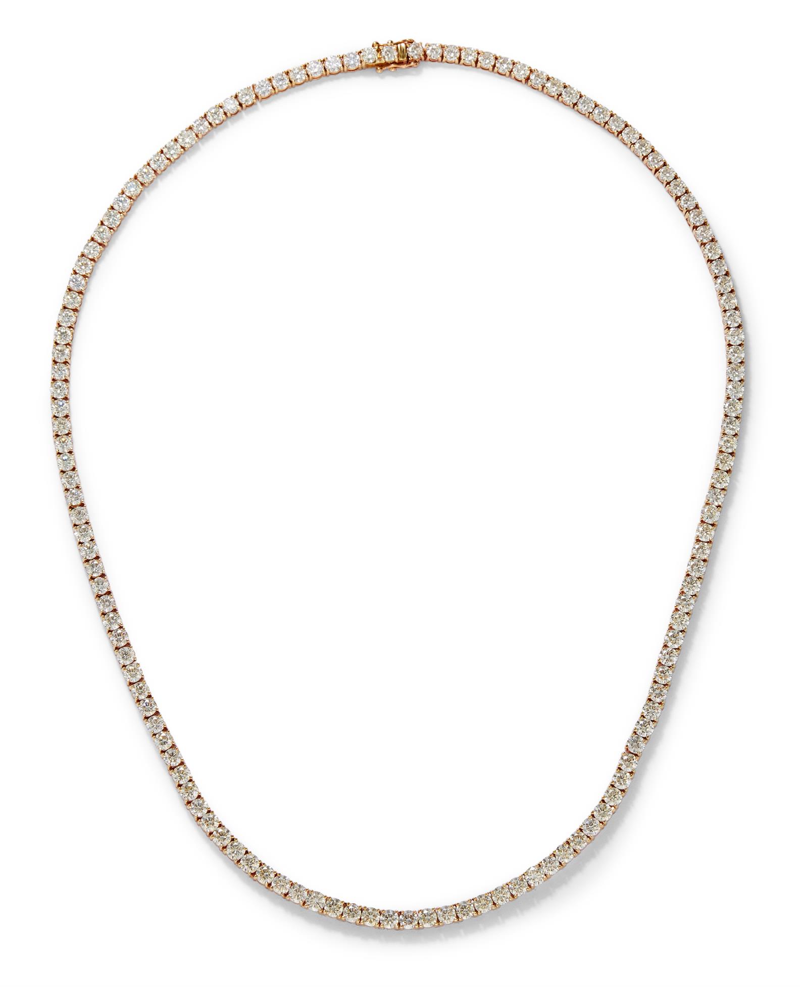 Composed of a line of 131 claw-set brilliant-cut diamonds completed by a concealed box clasp, the diamonds together weighing approximately 26.20 carats, mounted in 14ct pink gold, length 535mm.