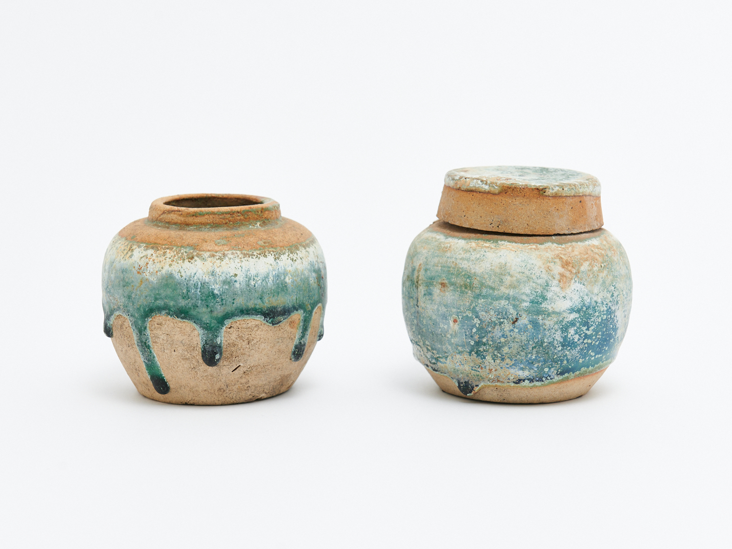 TWO CHINESE POTTERY GINGER JARS H.10CM, LEONARD JOEL LOCAL DELIVERY: SMALL