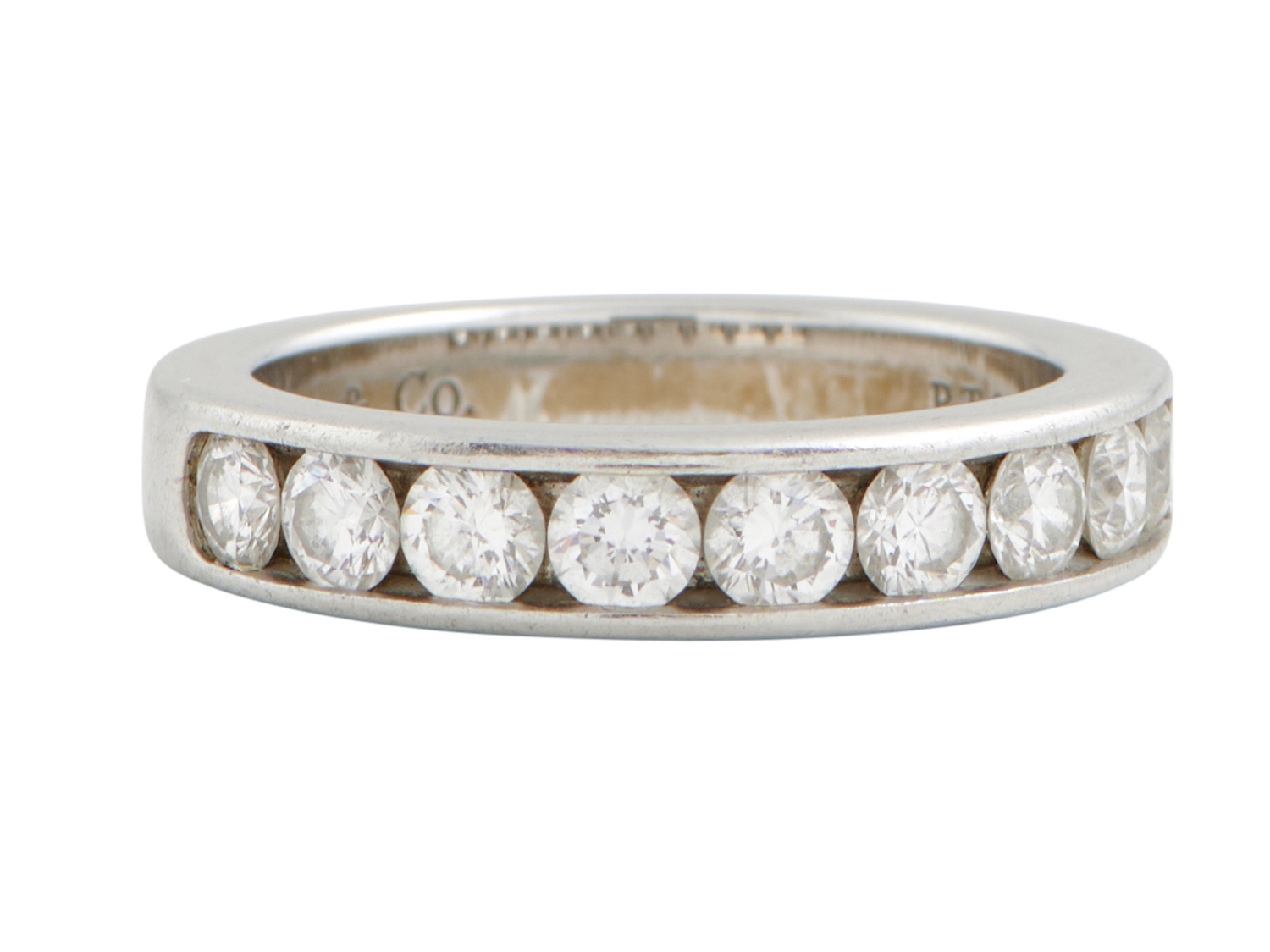 Of half hoop design, featuring nine channel-set brilliant-cut diamonds together weighing approximately 1.00 carat, signed Tiffany & Co., size J, accompanied by a Tiffany & Co. box.