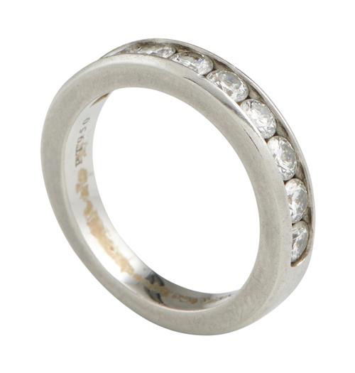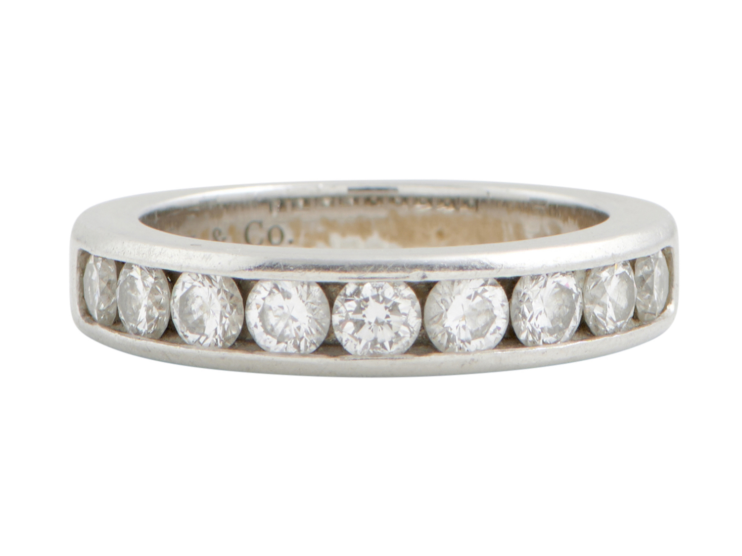 Of half hoop design, set with nine channel-set brilliant-cut diamonds together weighing approximately 1.00 carat, signed Tiffany & Co., size J, accompanied by a Tiffany & Co. box.