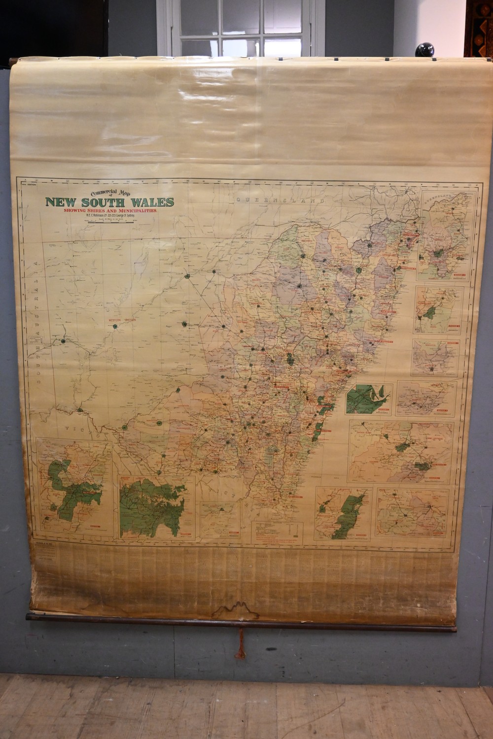 A VINTAGE CANVAS MAP OF NSW (A/F) (190H X 153W CM) (LEONARD JOEL DELIVERY SIZE: MEDIUM)
