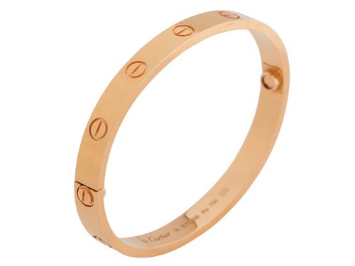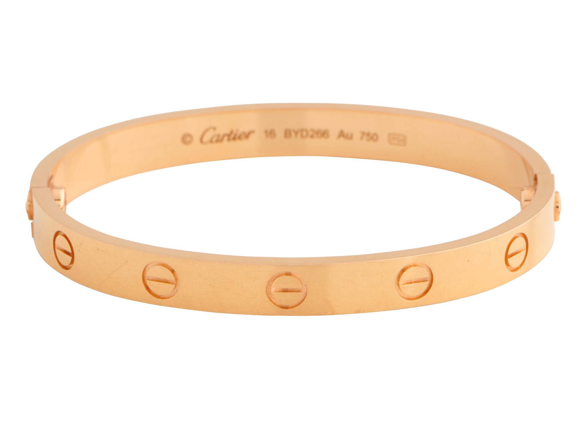 The oval hinged bangle decorated at intervals with twelve applied screwhead motifs, with screw down clasp, signed Cartier, numbered BYD266, inner diameter approximately 52mm, size 16, accompanied by Cartier certificate, box and screwdriver.