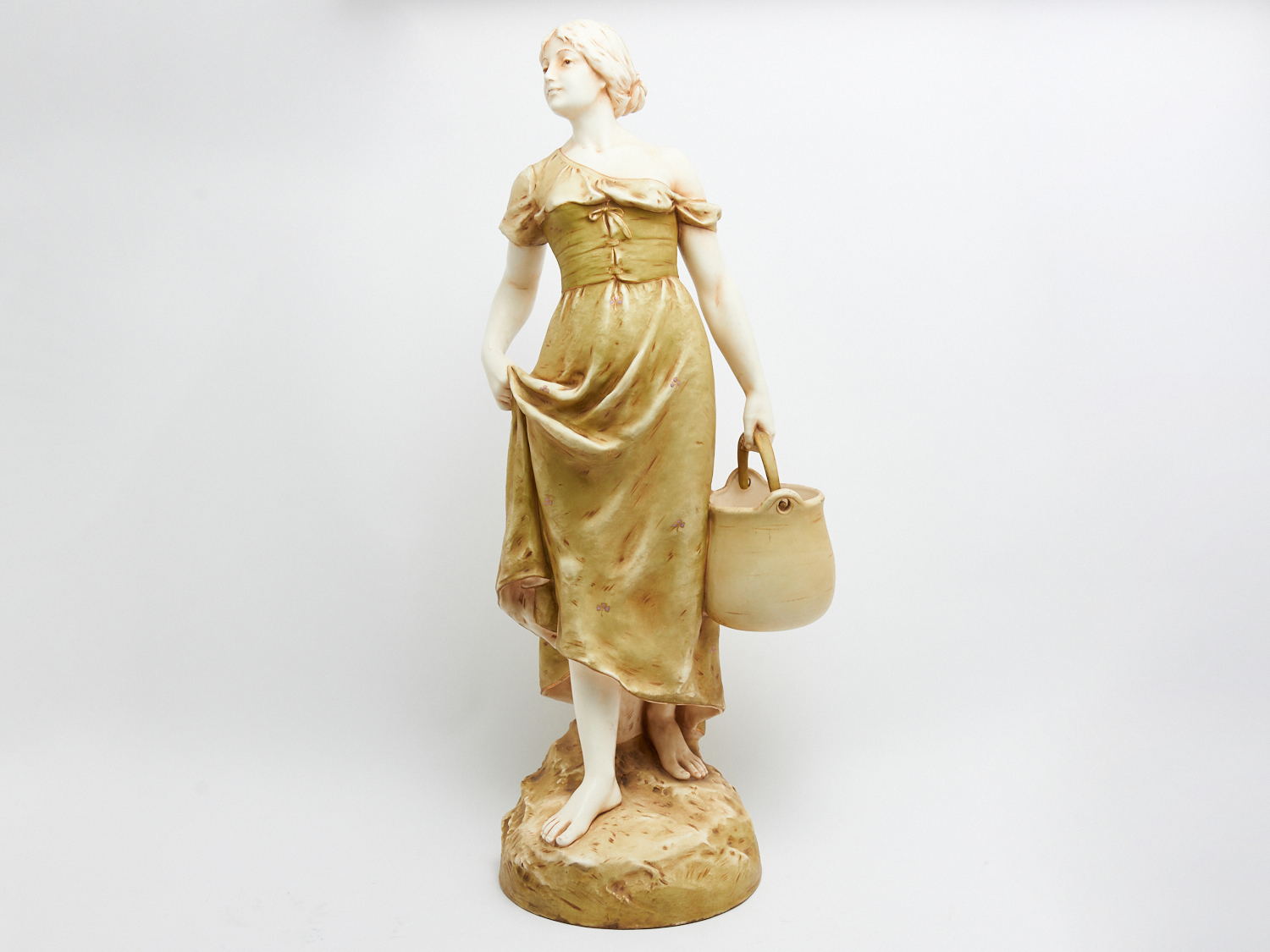 A CERAMIC "WATER CARRIER" FIGURE IN THE MANNER OF ROYAL DUX, MODEL NUMBER TO BASE H.87 CM (A/F HAIRLINE), LEONARD JOEL LOCAL DELIVERY: MEDIUM