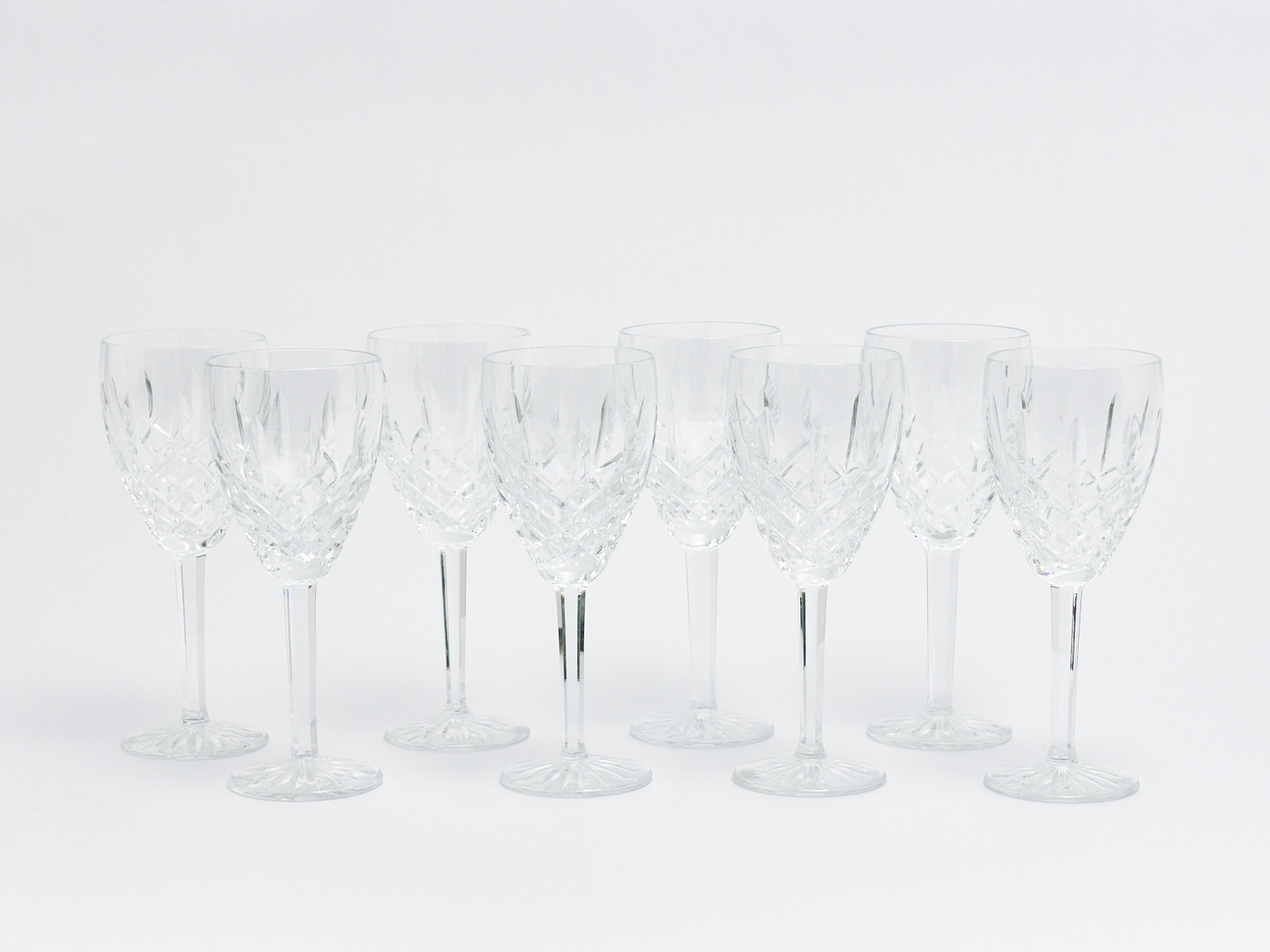 EIGHT WATERFORD ARAPLIN PATTERN WHITE WINE GLASSES H.18CM, LEONARD JOEL LOCAL DELIVERY: MEDIUM