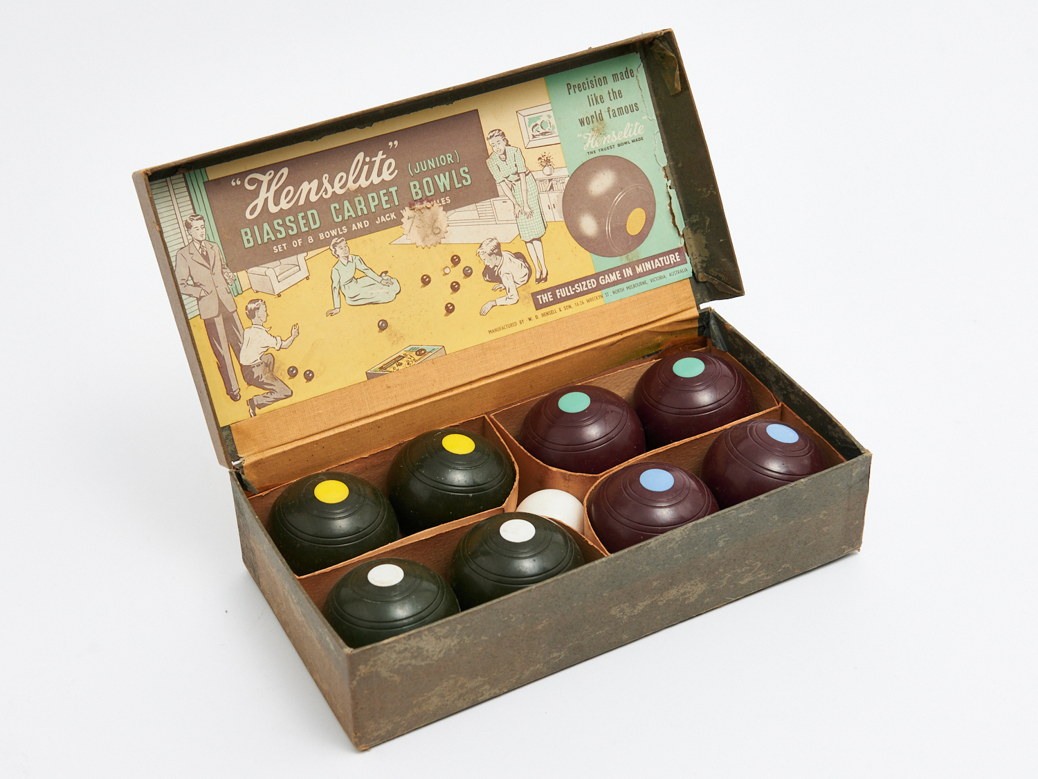 A SET OF HENSELITE (JUNIOR) BIASED CARPET BOWLS, LEONARD JOEL LOCAL DELIVERY: SMALL
