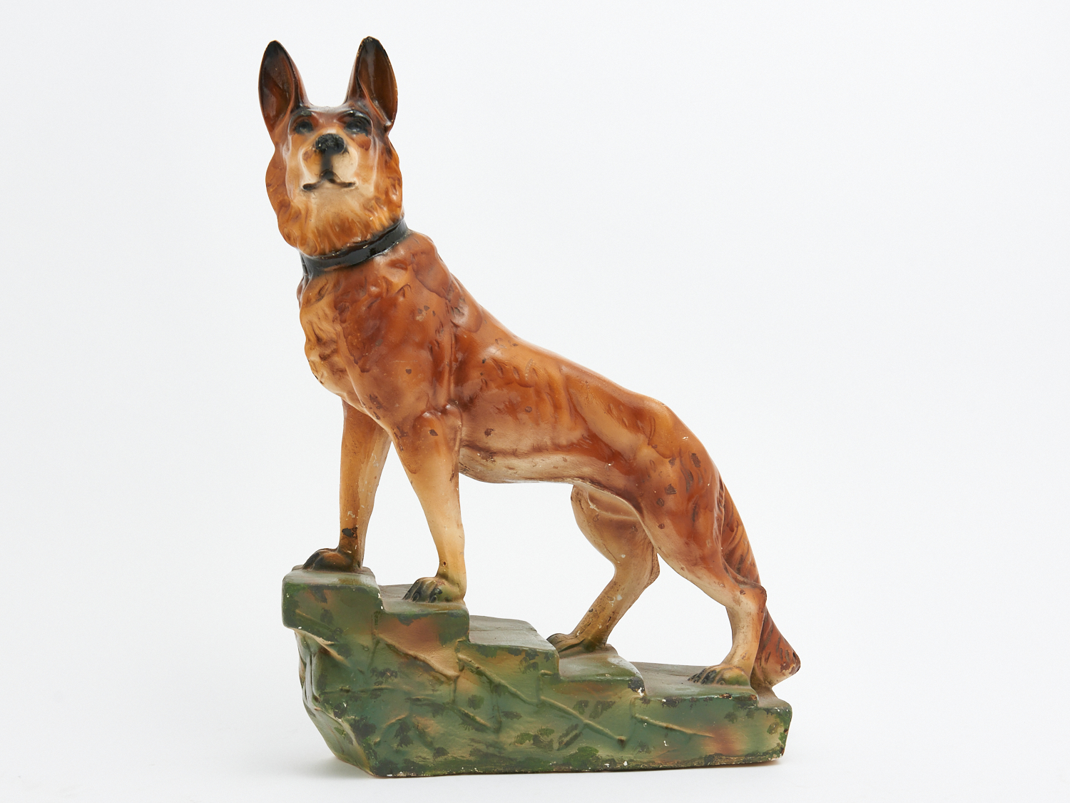 A PLASTER DOG SCULPTURE H.47CM X W.36CM, LEONARD JOEL LOCAL DELIVERY: MEDIUM