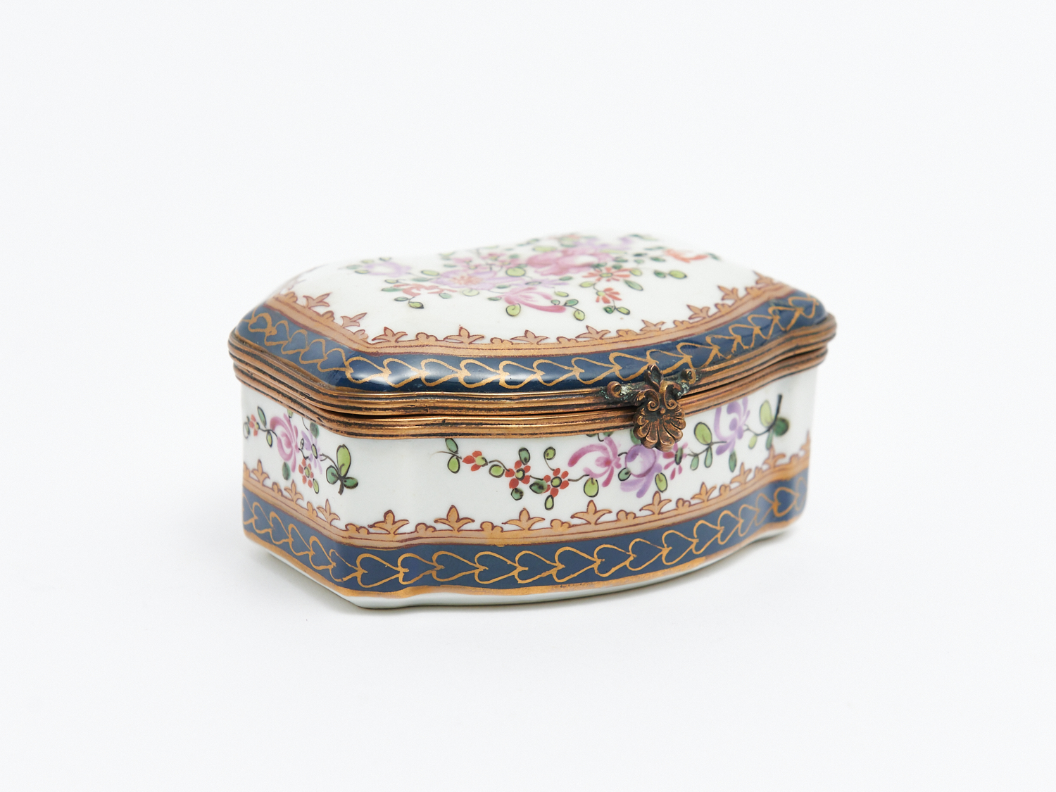 A FLORAL DECORATED PORCELAIN BOX WITH S MARKED TO BASE W.9CM, LEONARD JOEL LOCAL DELIVERY: SMALL