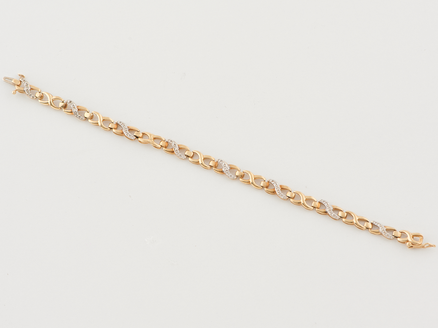 A DIAMOND SET BRACELET IN 9CT GOLD, TOTAL LENGTH APPROXIMATELY 185MM, 7.58GMS