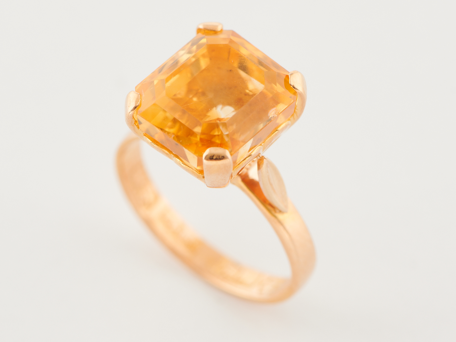 A CITRINE SET RING IN 18CT GOLD, THE CITRINE MEASURING APPROXIMATELY 11 X 10MM AND 6.5CTS, ASIAN HALLMARKS FOR HIGH CARAT GOLD, SIZE M, 6.25GMS