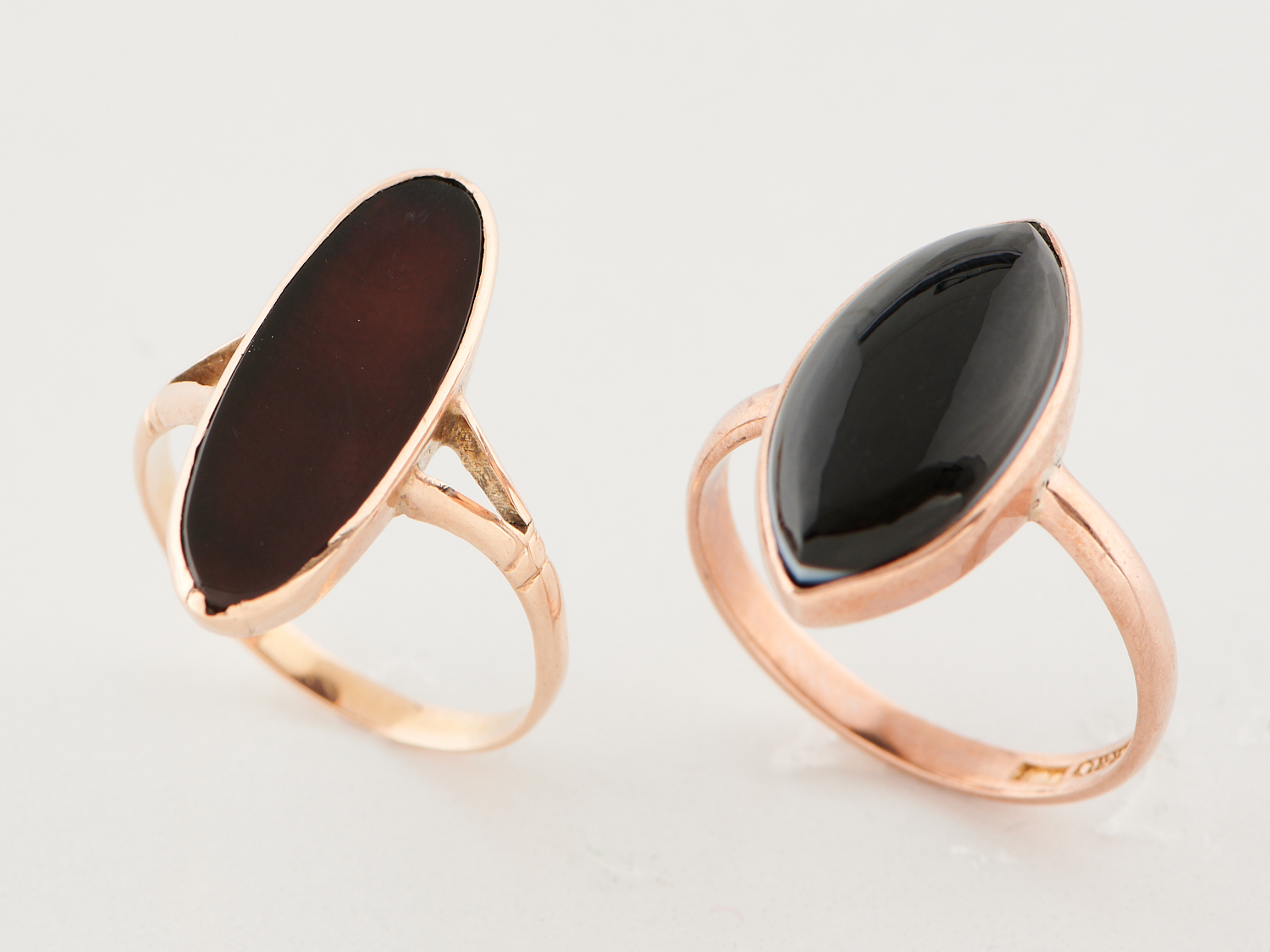 TWO ONYX SET RINGS IN 9CT GOLD, SIZES P & R-S, 5.6GMS