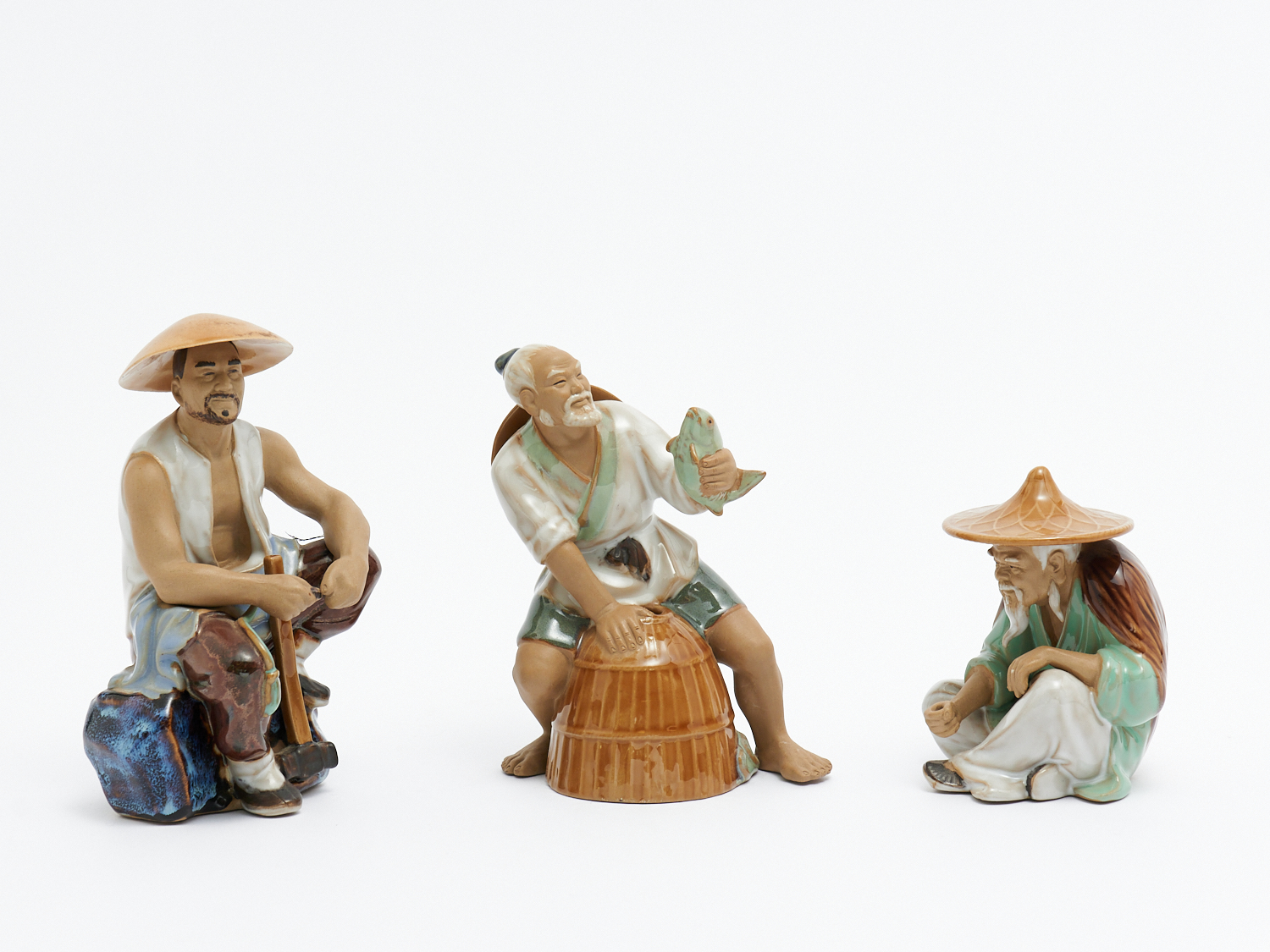 THREE CHINESE FIGURES, H.19CM (TALLEST), LEONARD JOEL LOCAL DELIVERY: MEDIUM