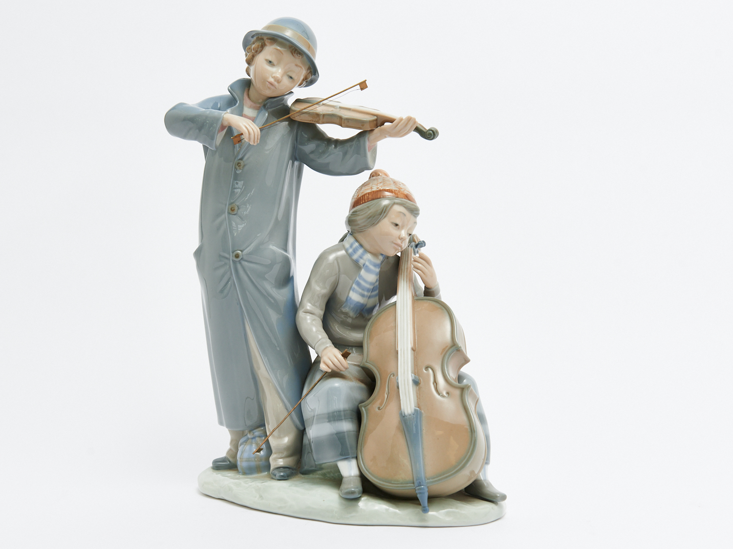 A LARGE NAO FIGURE OF COUPLE PLAYING VIOLIN AND CELLO, H.33CM, LEONARD JOEL LOCAL DELIVERY: MEDIUM