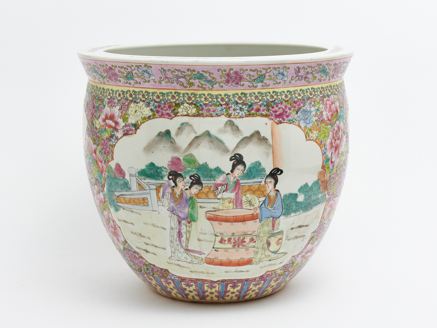 A 20TH CENTURY CHINESE FAMILLE ROSE SCENIC GOLDFISH BOWL WITH INTERNAL DECORATION, H.36 X DIA.41CM, LEONARD JOEL LOCAL DELIVERY: MEDIUM