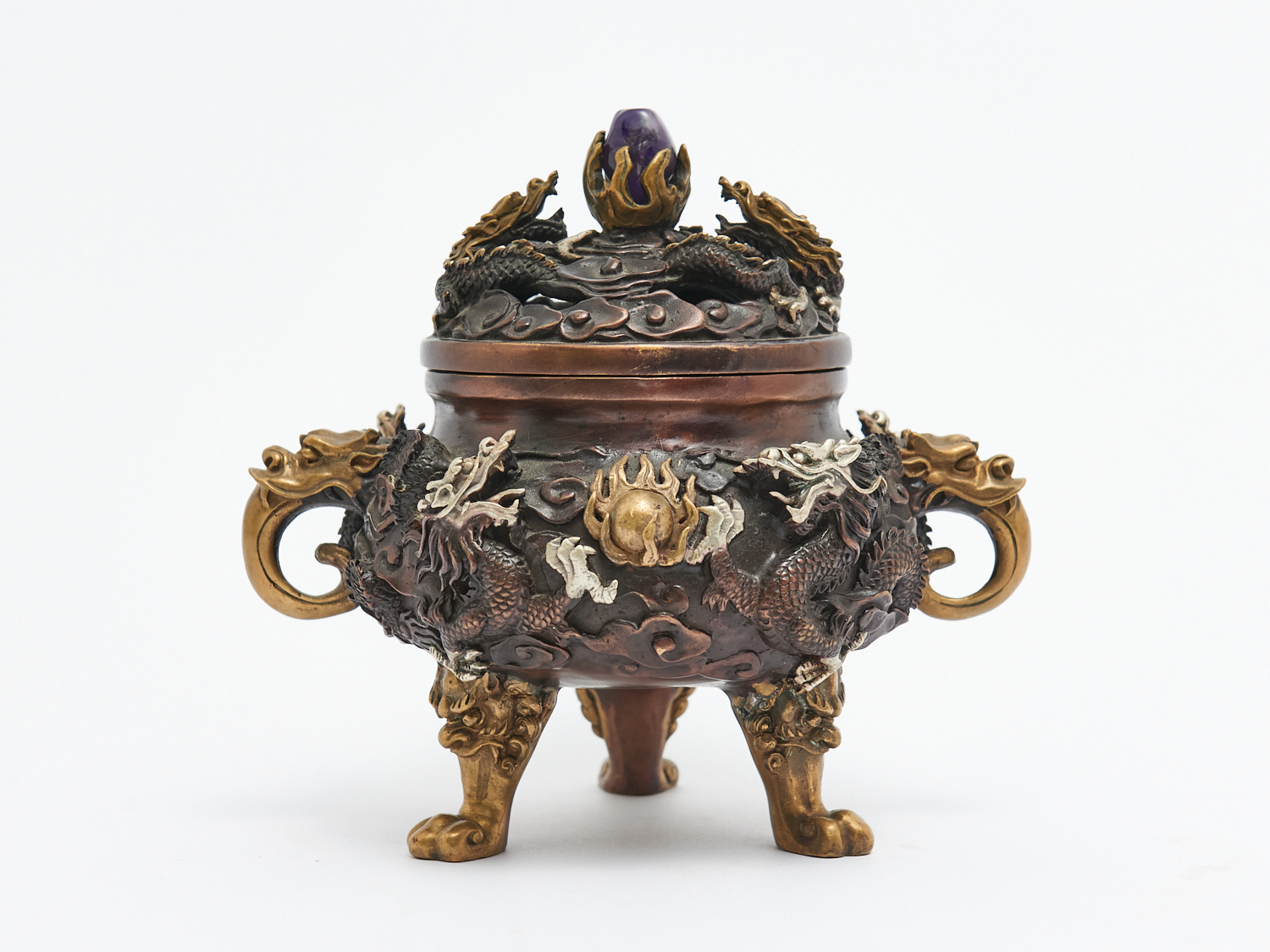 A BRONZE DRAGON DECORATED CENSOR, H.16.5CM, LEONARD JOEL LOCAL DELIVERY: MEDIUM