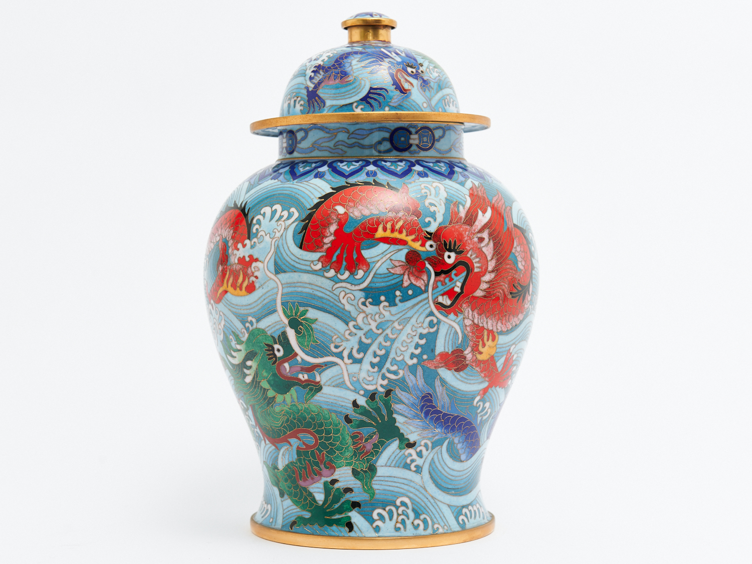 A CHINESE DRAGON DECORATED CLOISONNE GINGER JAR, H.33CM, LEONARD JOEL LOCAL DELIVERY: MEDIUM