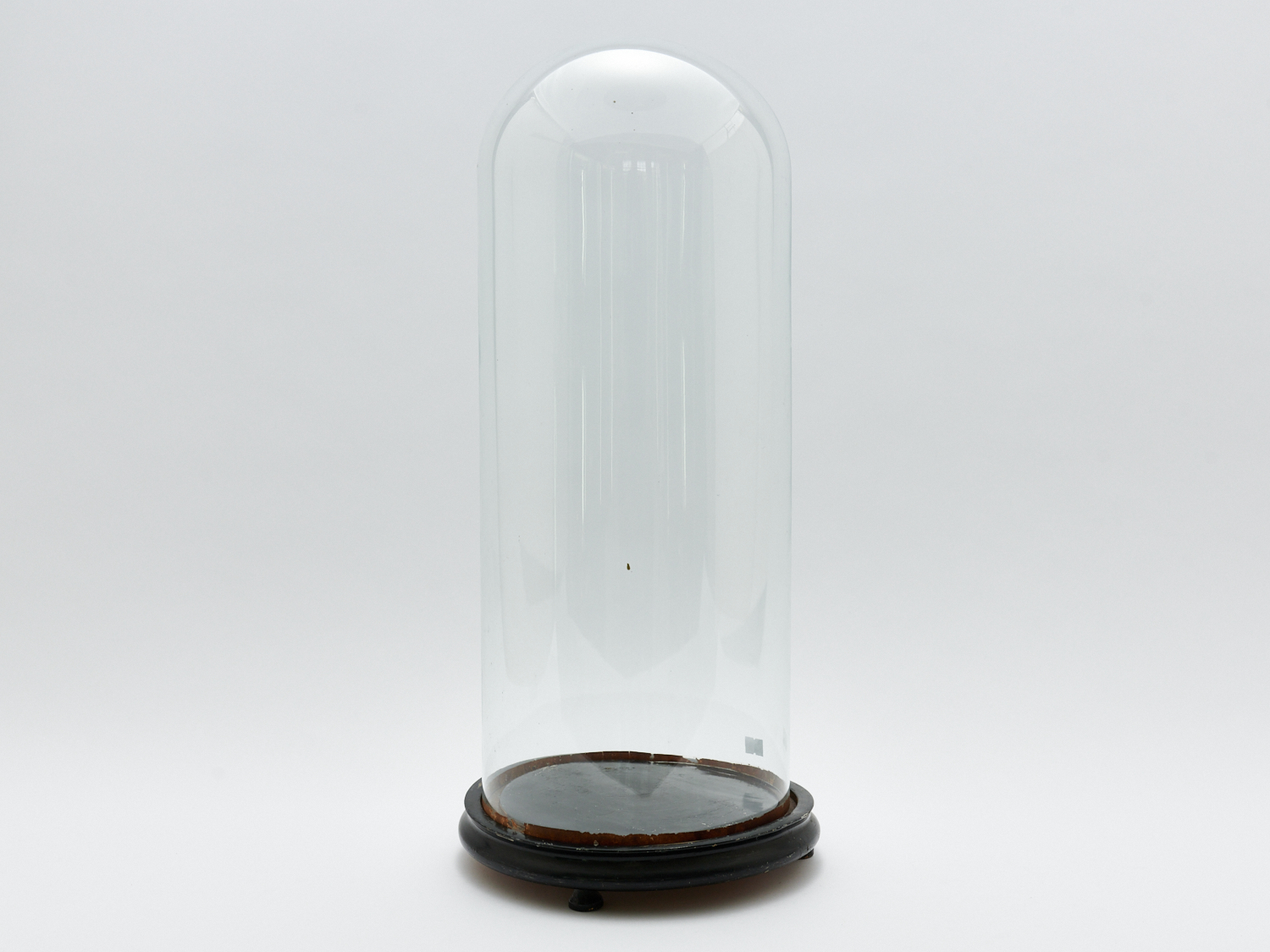 A LARGE 19TH CENTURY FRENCH EBONISED WOOD BASED GLASS DOME H.54CM, LEONARD JOEL LOCAL DELIVERY: MEDIUM