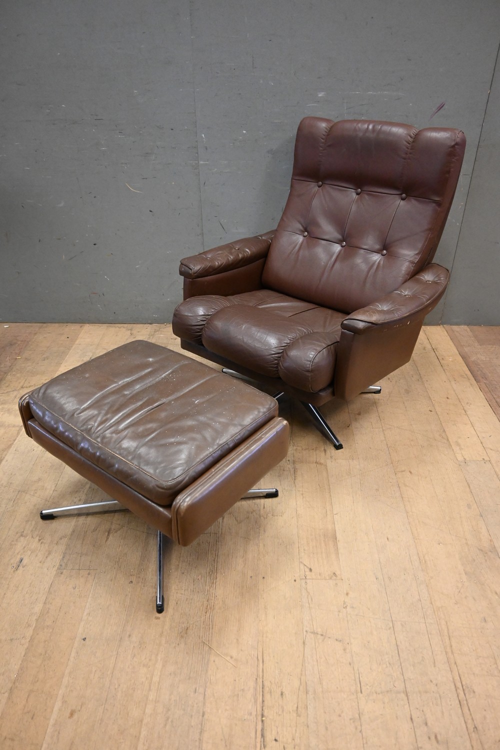 A DANISH MID-CENTURY ARMCHAIR WITH OTTOMAN (A/F) (93H X 84W X 89D CM) (LEONARD JOEL DELIVERY SIZE: X-LARGE)