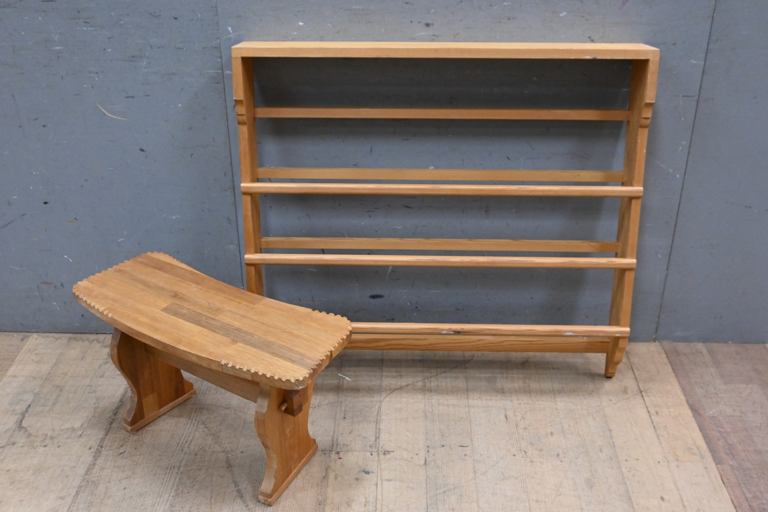 A DANISH PLATE DISPLAY RACK AND STOOL (A/F) (85H X 91W X 15D CM) (LEONARD JOEL DELIVERY SIZE: MEDIUM)