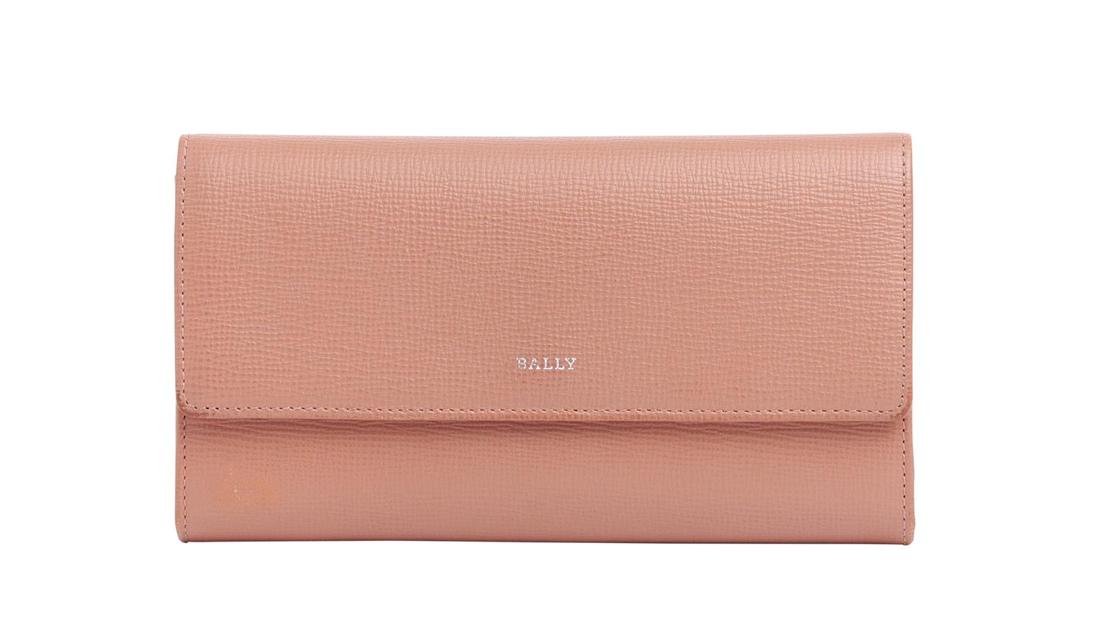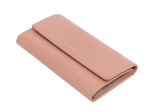 BALLY, LONG WALLET, STYLED IN GRAINED DUSTY PINK LEATHER WITH NOTE, CARD AND COIN COMPARTMENTS TO THE INTERIOR, 18.5 X 10CM