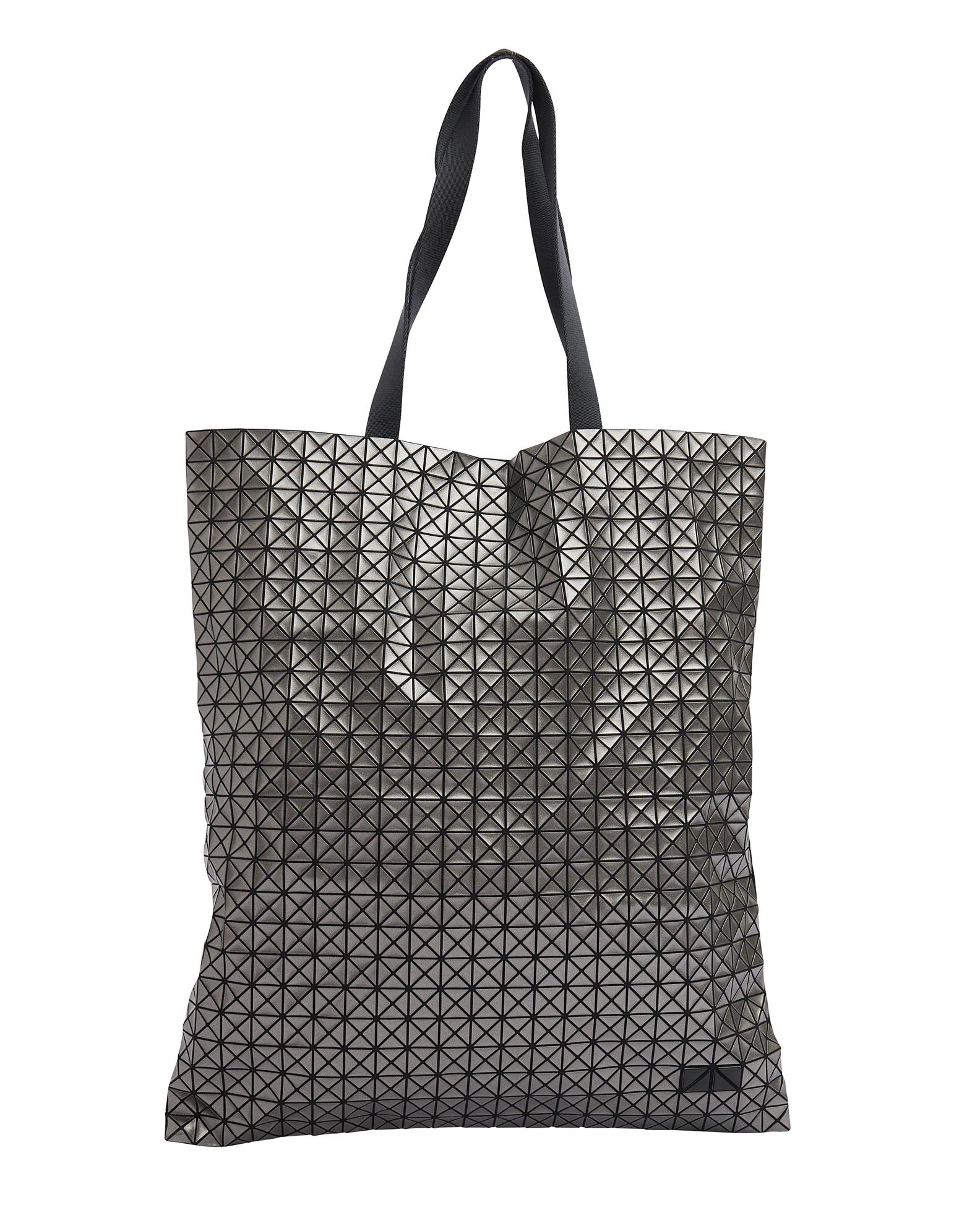 ISSEY MIYAKE BAOBAO BAG - Styled in silver grey synthetic with grosgrain handles, 37 x 43cm.