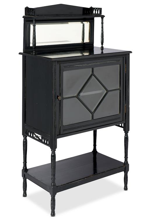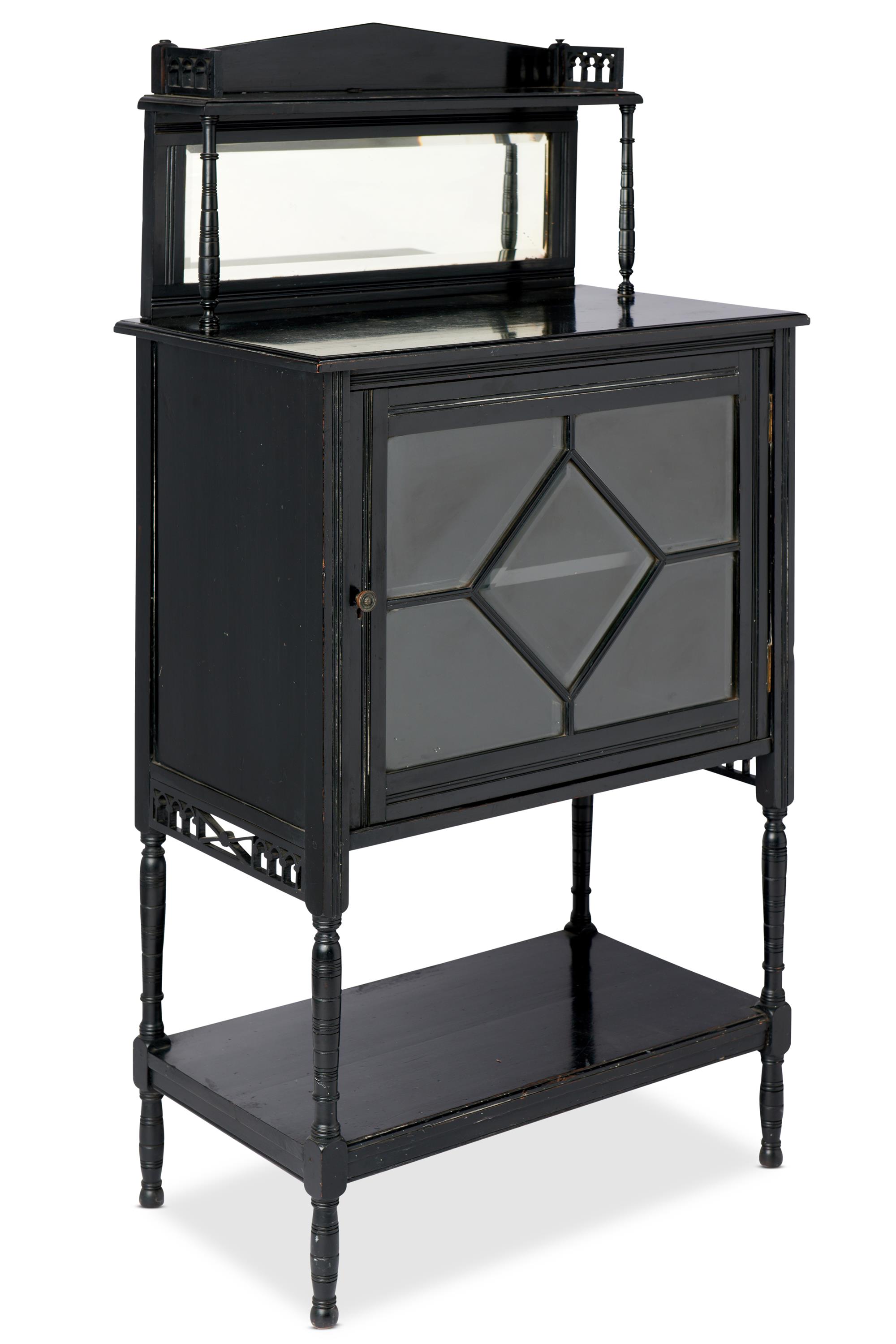 Minor surface scratches and scuffs to body consistent with age and use. Very faded perfume bottle marks. No damage to original glazed door.