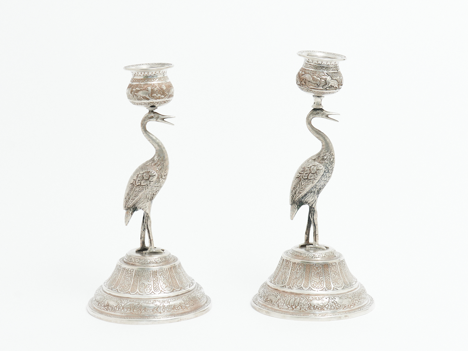 A PAIR OF INDIAN SILVER CANDLE STICKS H.23CM, LEONARD JOEL LOCAL DELIVERY: SMALL