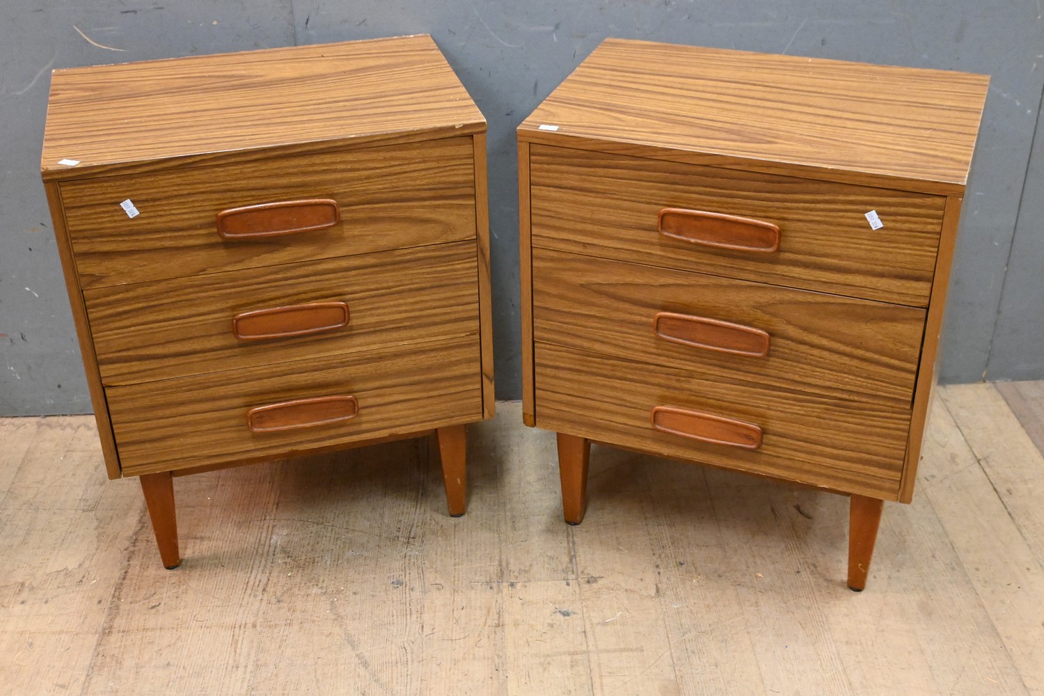 PAIR OF MID CENTURY TEAK BEDSIDE CABINETS (A/F) (64H X 52W X 38D CM) (LEONARD JOEL DELIVERY SIZE: LARGE)