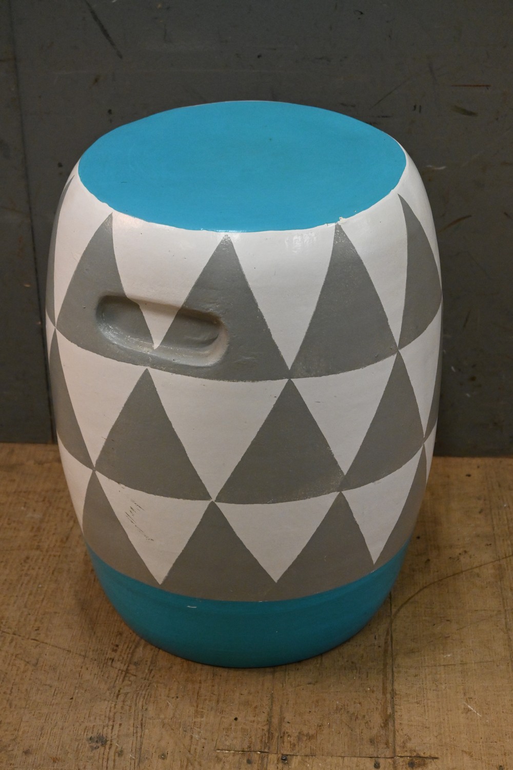A TERRACOTTA PAINTED DRUM STOOL (44H X 33D CM) (LEONARD JOEL DELIVERY SIZE: LARGE)