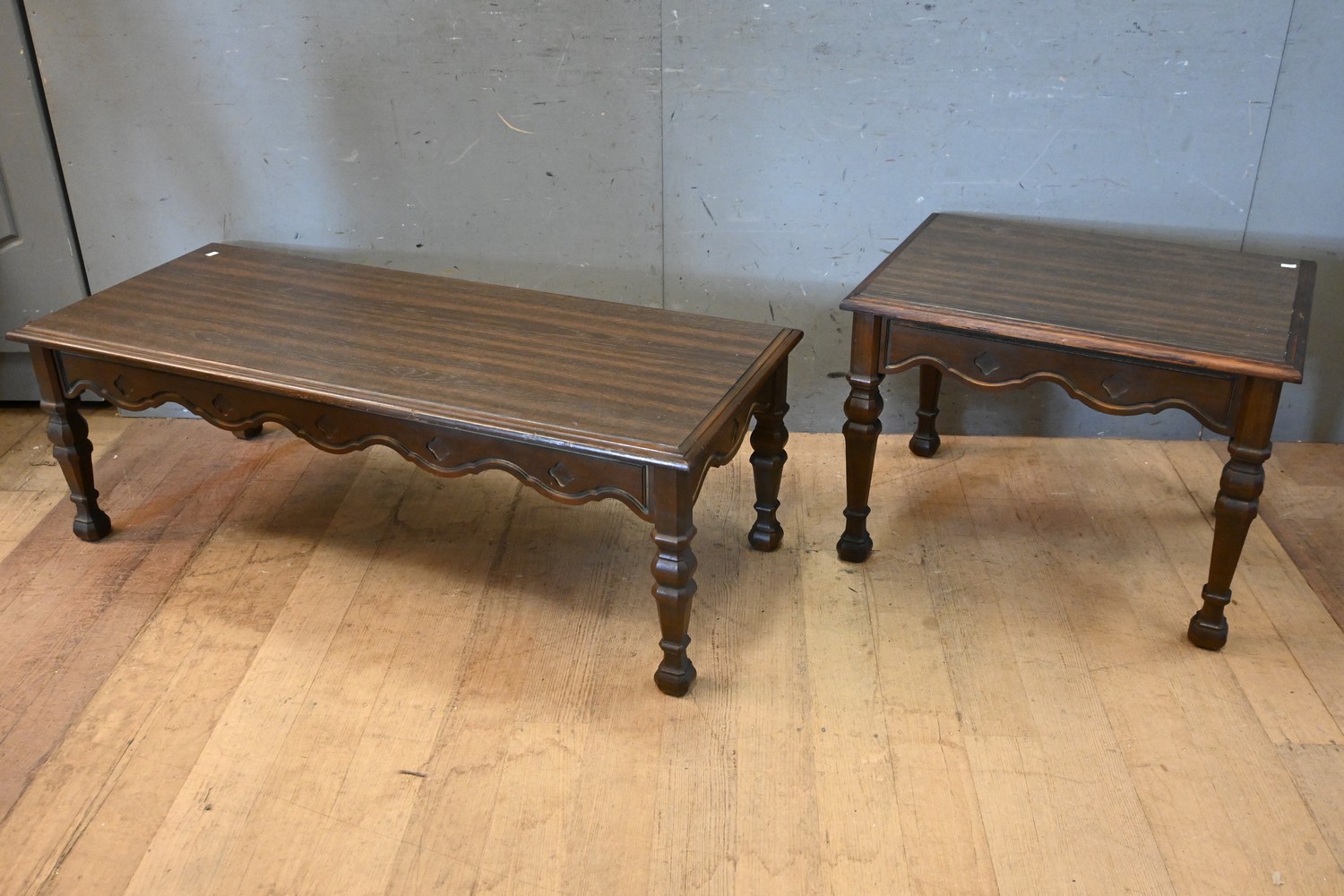 TWO TIMBER COFFEE TABLES (50H X 66W X 52D CM) (LEONARD JOEL DELIVERY SIZE: LARGE)