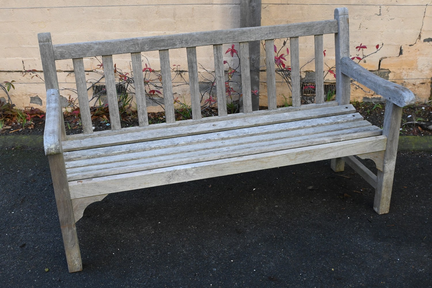 A TEAK OUTDOOR BENCH (A/F) (90H X 150W X 68D CM) (LEONARD JOEL DELIVERY SIZE: X-LARGE)