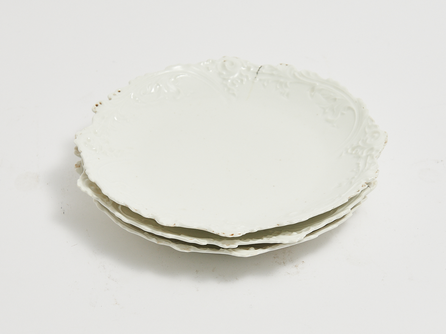 A GROUP OF THREE WHITE LIMOGES PLATES DIA.23CM, LEONARD JOEL LOCAL DELIVERY: SMALL