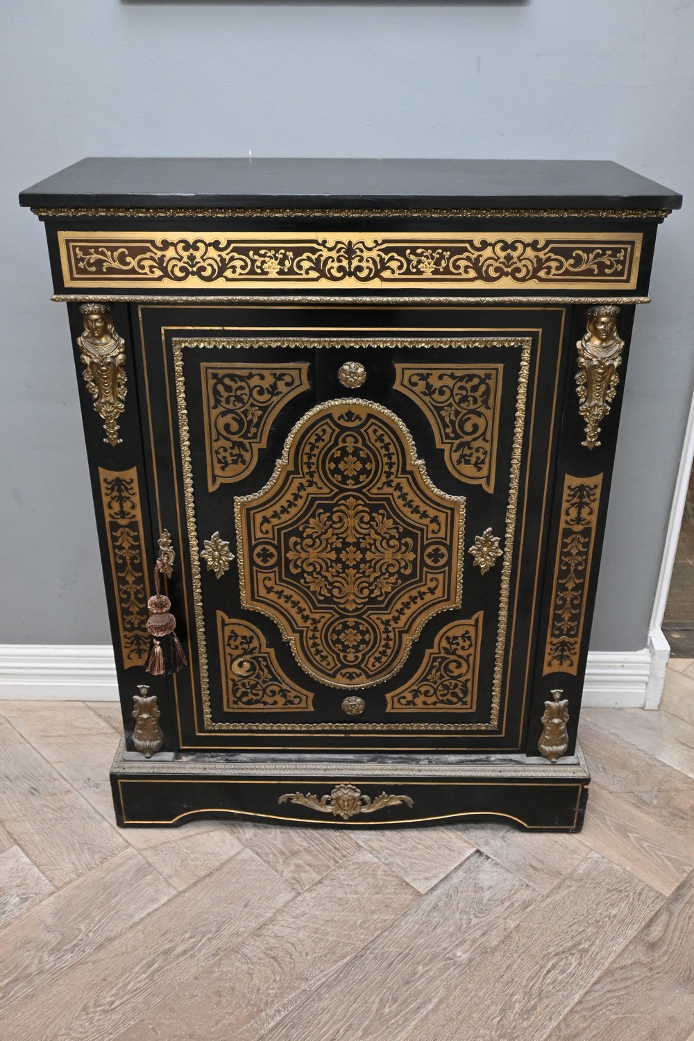 A LATE 19TH CENTURY FRENCH BOULLE SINGLE DOOR CABINET (A/F) (115H X 87W X 37D CM) (LEONARD JOEL DELIVERY SIZE: X-LARGE)
