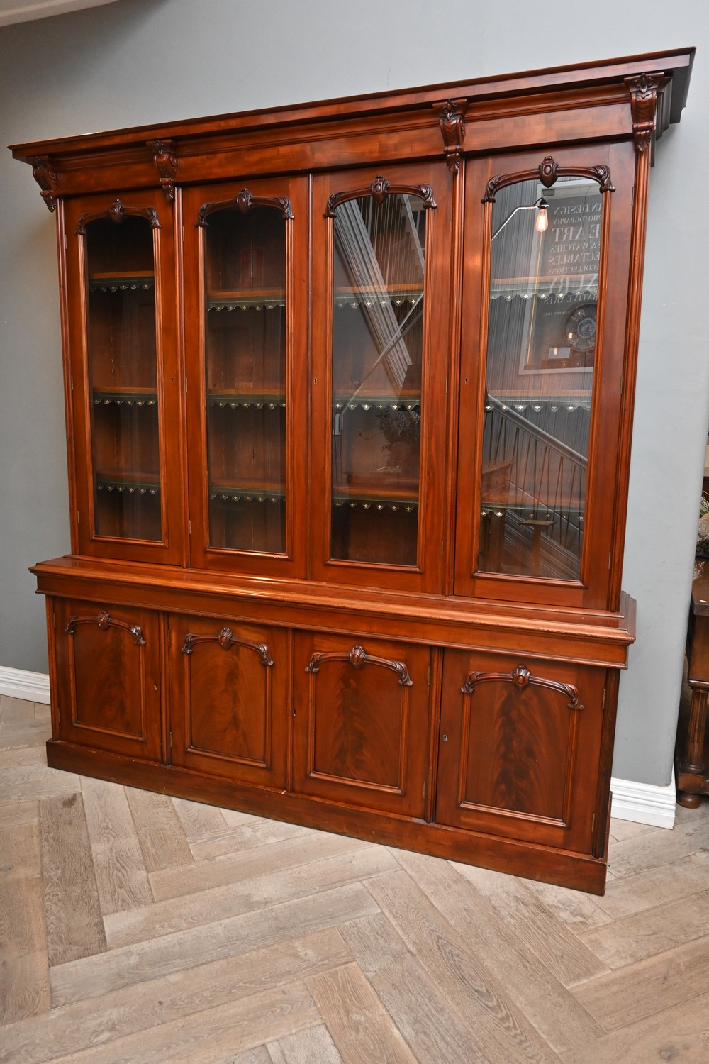 A VICTORIAN MAHOGANY FOUR-BAY LIBRARY BOOKCASE (A/F) (237H X 219W X 49D CM) (PLEASE NOTE THIS HEAVY ITEM MUST BE REMOVED BY CLIENTS OR CARRIERS AT THE CUSTOMERS EXPENSE. LEONARD JOEL STAFF CANNOT ASSIST CARRYING THIS ITEM)