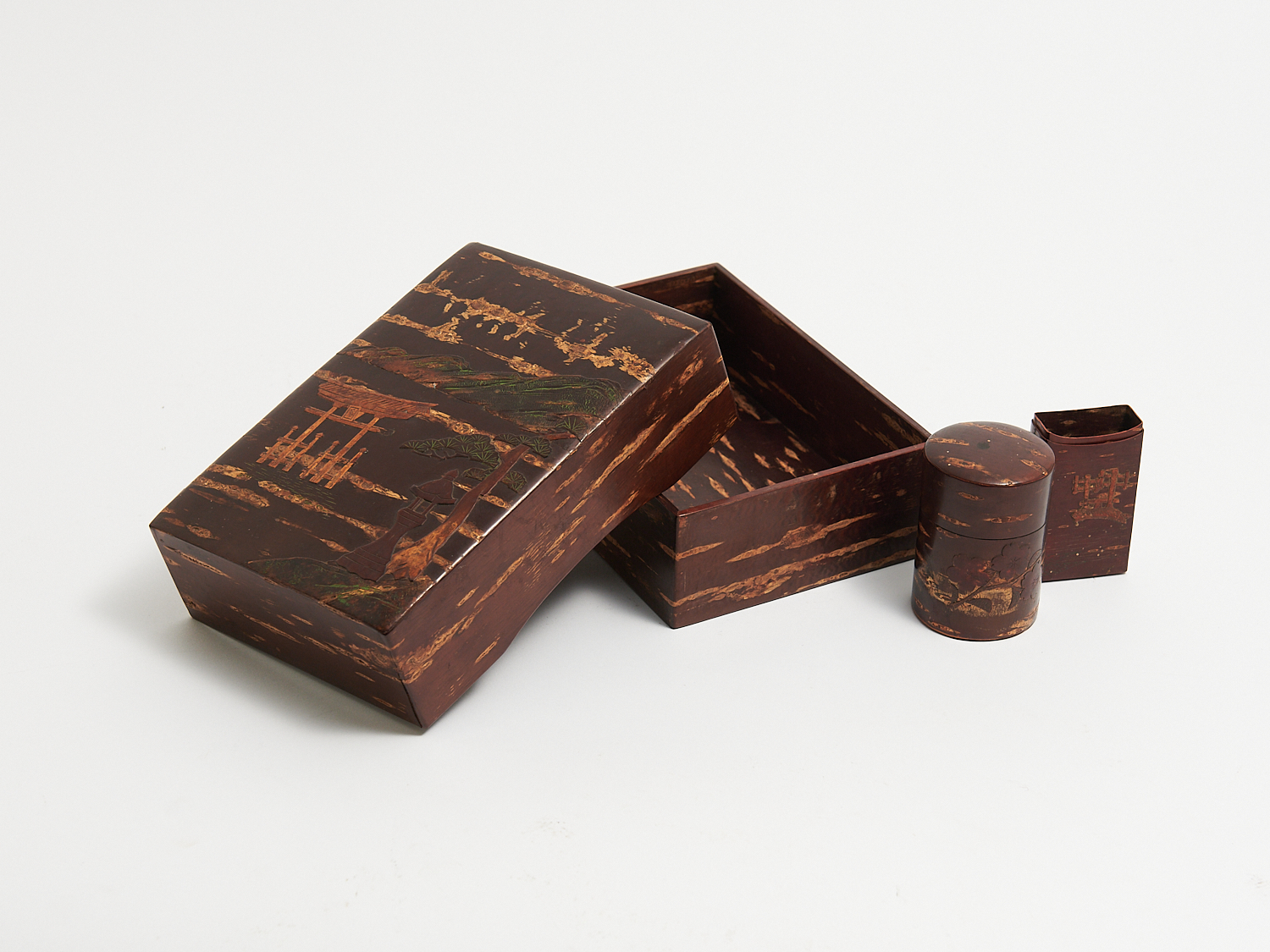 A JAPANESE CHERRY BARK DESK SET H.6.3CM X W.21CM X D.15CM, LEONARD JOEL LOCAL DELIVERY: SMALL