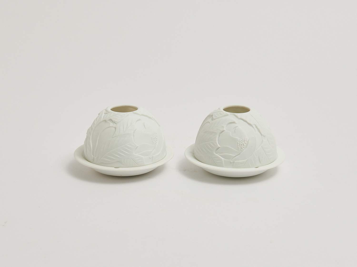 TWO BERNARDAUD CERAMIC CANDLE HOLDERS DIA.11.5 CM, LEONARD JOEL LOCAL DELIVERY: SMALL