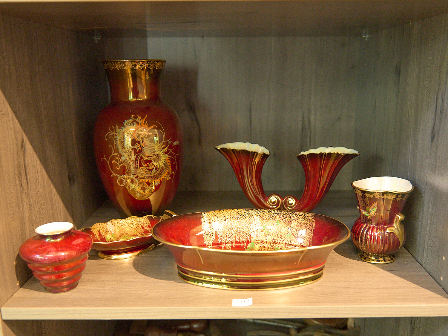 A GROUP OF CROWN DEVON AND CARLTONWARE ROUGE ROYAL PORCELAIN H.30.5CM (TALLEST), LEONARD JOEL LOCAL DELIVERY: MEDIUM