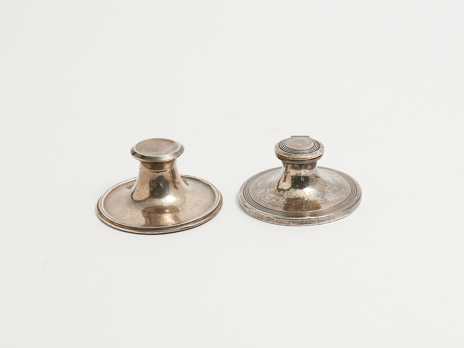 TWO STERLING SILVER INKWELLS W.11CM, LEONARD JOEL LOCAL DELIVERY: SMALL