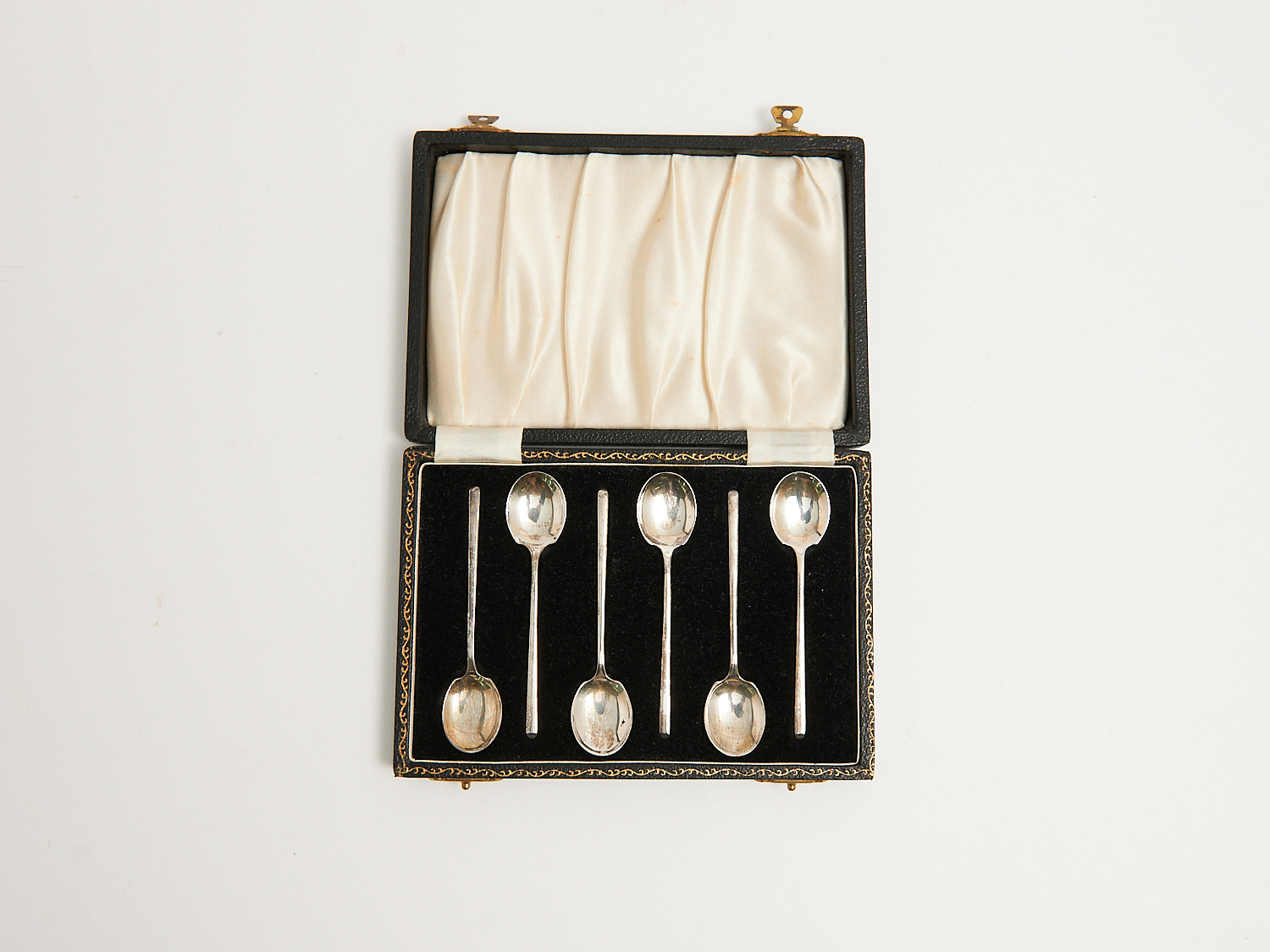 A SET OF STERLING SILVER COFFEE SPOONS W.16CM X D.11CM, LEONARD JOEL LOCAL DELIVERY: SMALL