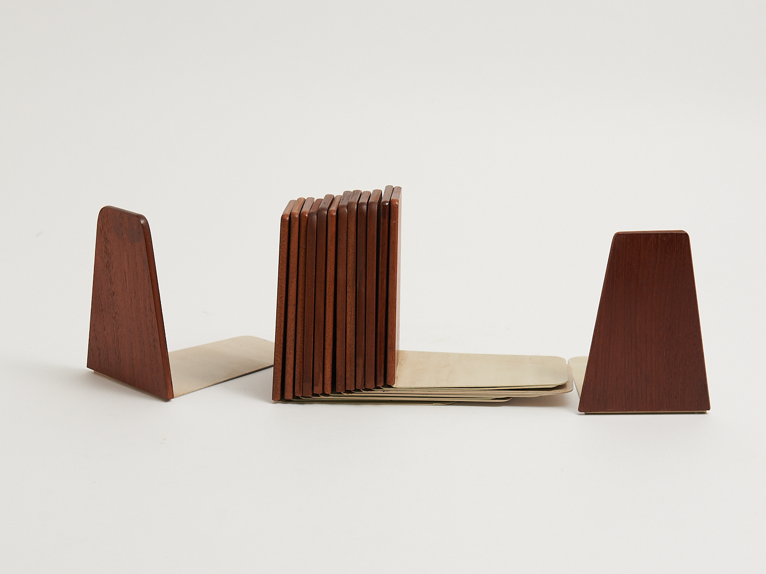 A COLLECTION OF TEAK AND METAL DANISH BOOKENDS (14) H.14 CM, LEONARD JOEL LOCAL DELIVERY: SMALL