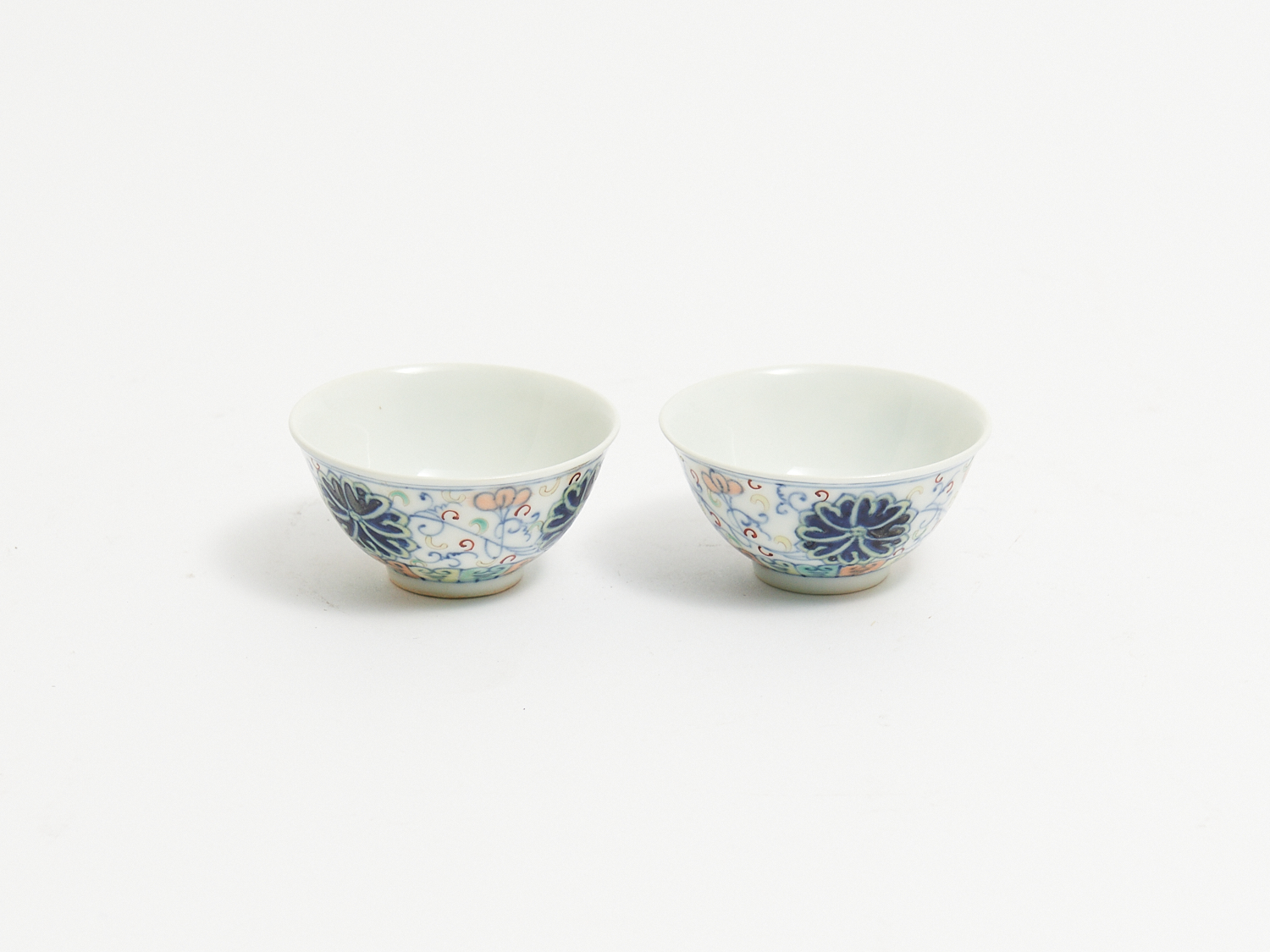 A PAIR OF CHINESE PORCELAIN CUPS H.4.5CM X DIA.5.5CM, LEONARD JOEL LOCAL DELIVERY: SMALL