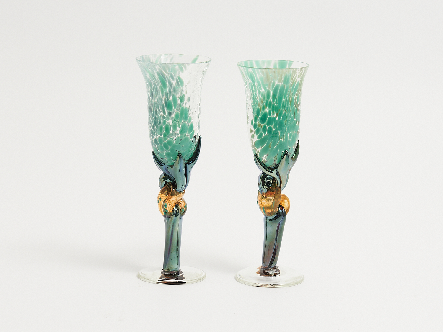 A PAIR OF COLIN HEANEY STUDIO GLASS GOBLETS H.23CM, LEONARD JOEL LOCAL DELIVERY: SMALL