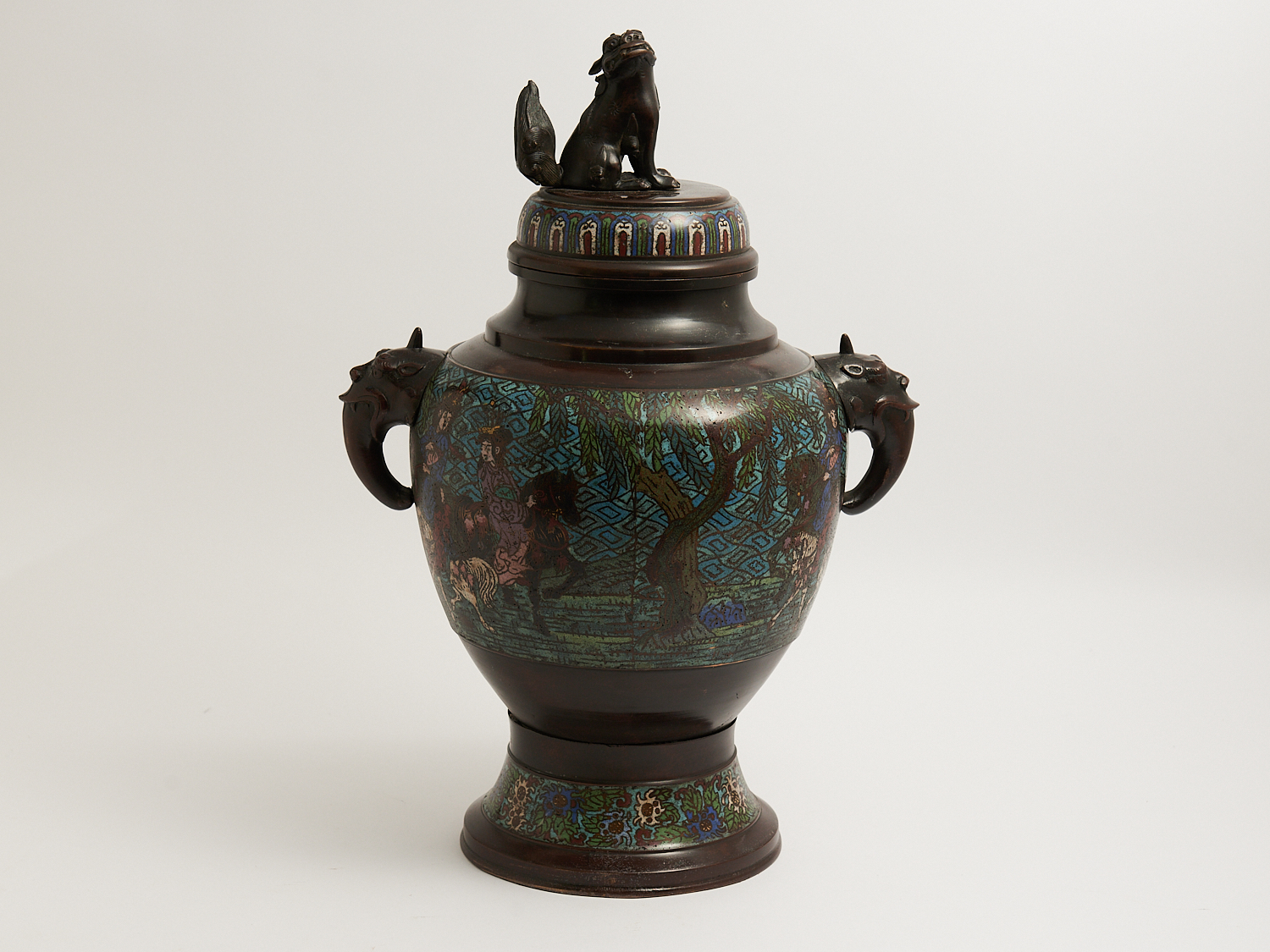 JAPANESE CHAMPLEUE LIDDED URN, BRONZE KORO FEATURING FOO DOG FINIAL H.62 CM, LEONARD JOEL LOCAL DELIVERY: MEDIUM