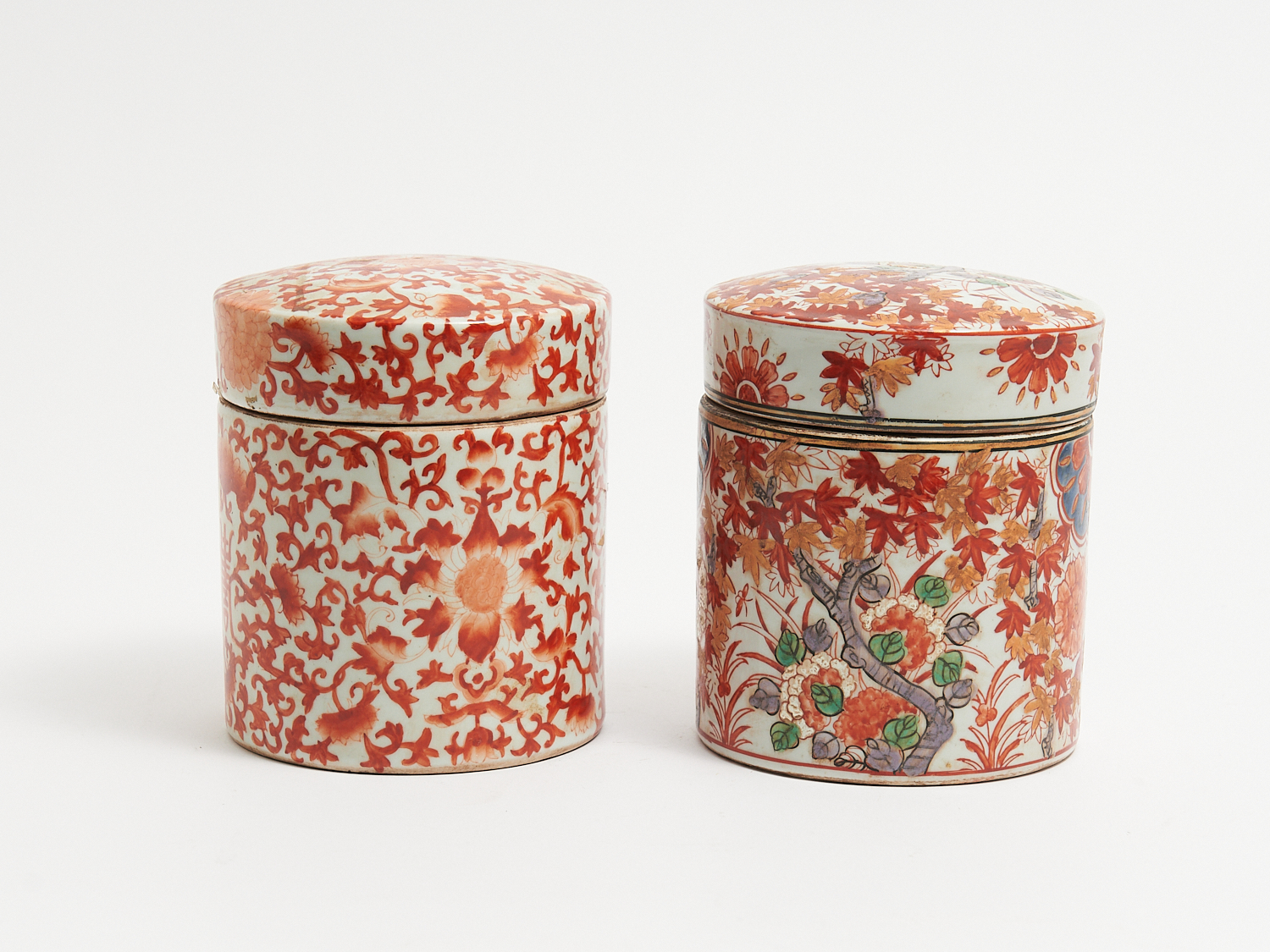 TWO CHINESE LIDDED POTS H.15CM, LEONARD JOEL LOCAL DELIVERY: SMALL