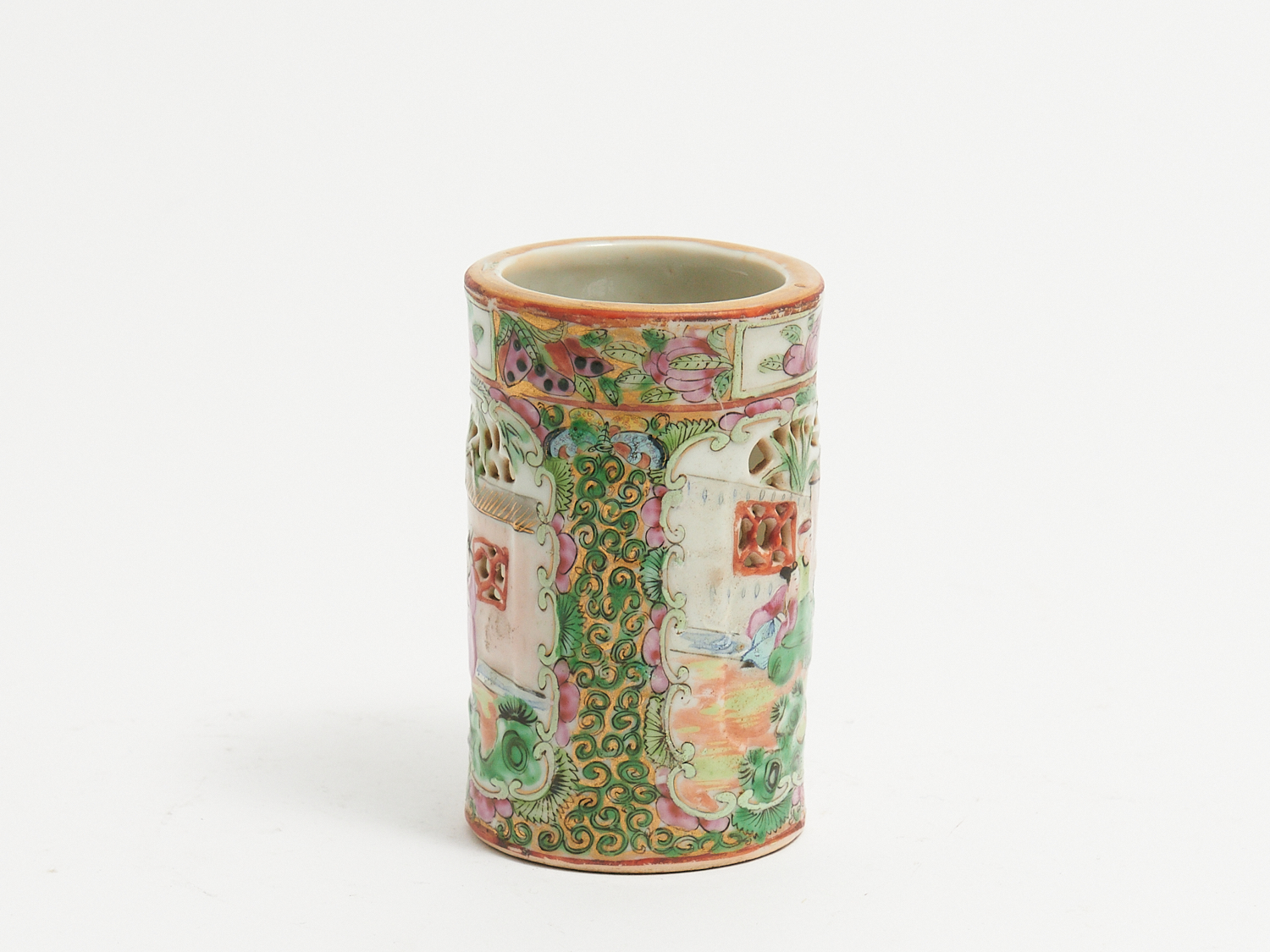 A CHINESE CANTON ROSE MEDALLION BRUSH POT H.10.5CM (A/F), LEONARD JOEL LOCAL DELIVERY: SMALL