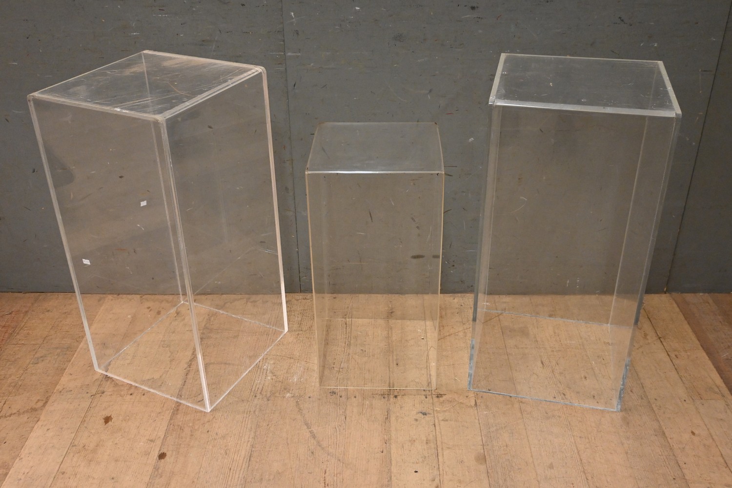 THREE PLASTIC PEDESTALS (77H X 38W X 38D CM) (A/F) (LEONARD JOEL DELIVERY SIZE: LARGE)