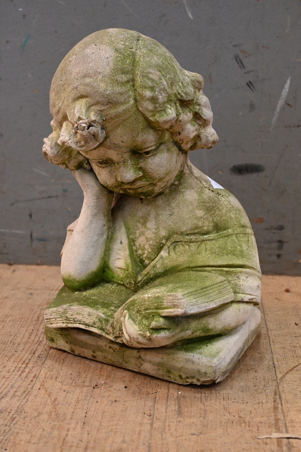 VINTAGE FRENCH RECONSTITIUTED STONE FIGURAL STATUE OF GIRL READING BOOK (30 CM H) (LEONARD JOEL DELIVERY SIZE: LARGE)