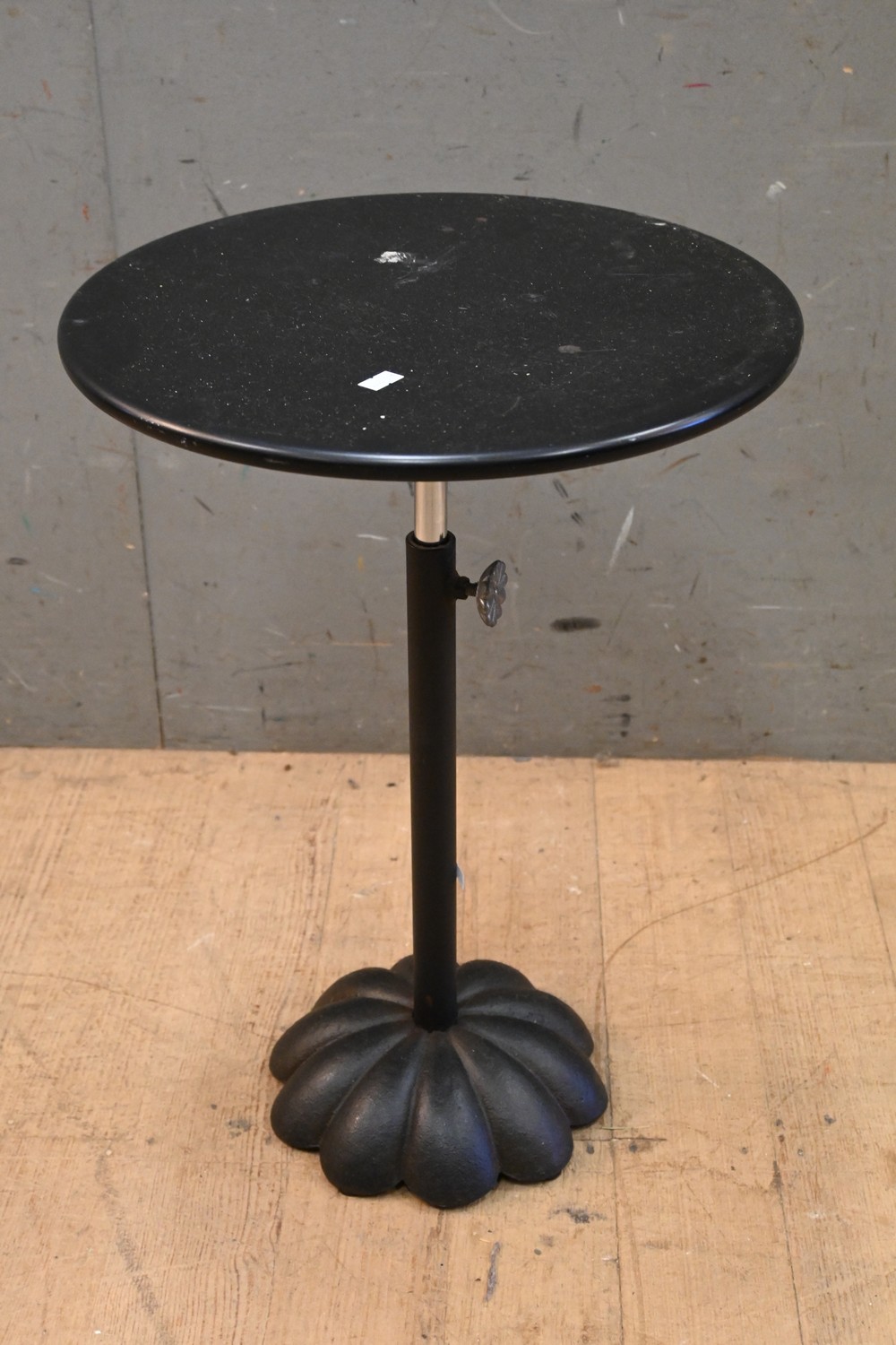 A BLACK STEEL AND CAST IRON BASED TELESCOPIC STAND (57H X 40D CM) (A/F) (LEONARD JOEL DELIVERY SIZE: LARGE)