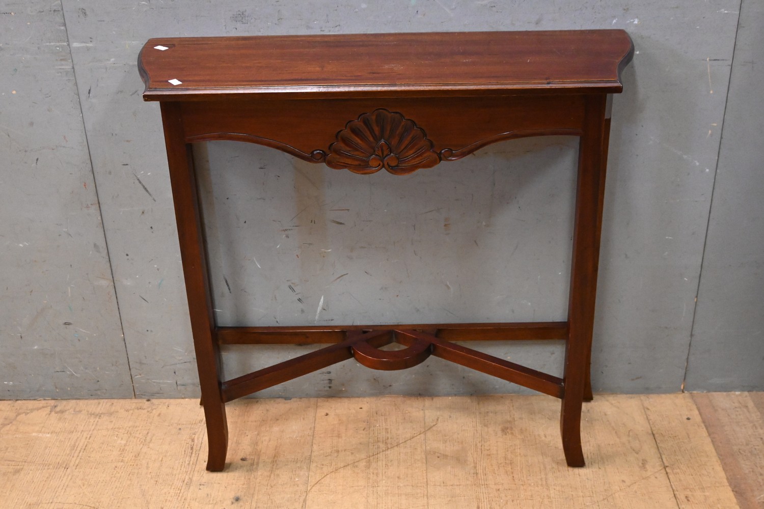 A CARVED MAHOGANY SIDE TABLE WITH SHELL PATTERN TO FRONT (75H X 80W X 26D CM) (LEONARD JOEL DELIVERY SIZE: MEDIUM)