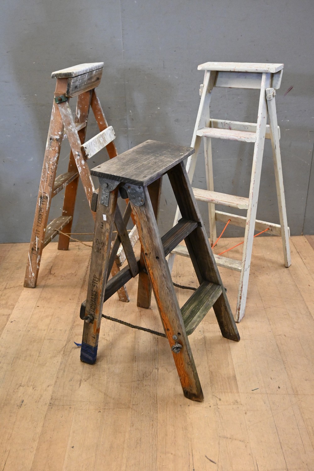 A COLLECTION OF THREE VINTAGE WOODEN FOLDING LADDERS (113H X 44W X 66D CM) (LEONARD JOEL DELIVERY SIZE: LARGE)